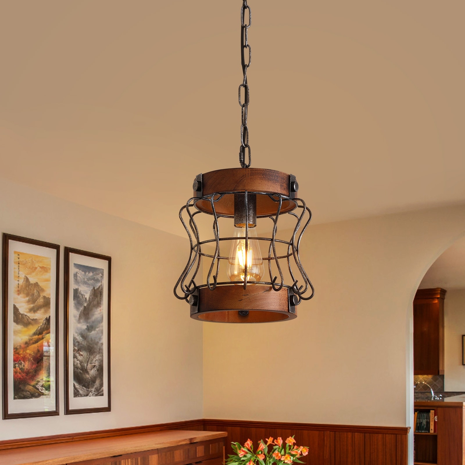 1-Light Farmhouse Pendant With Wood and Metal Design