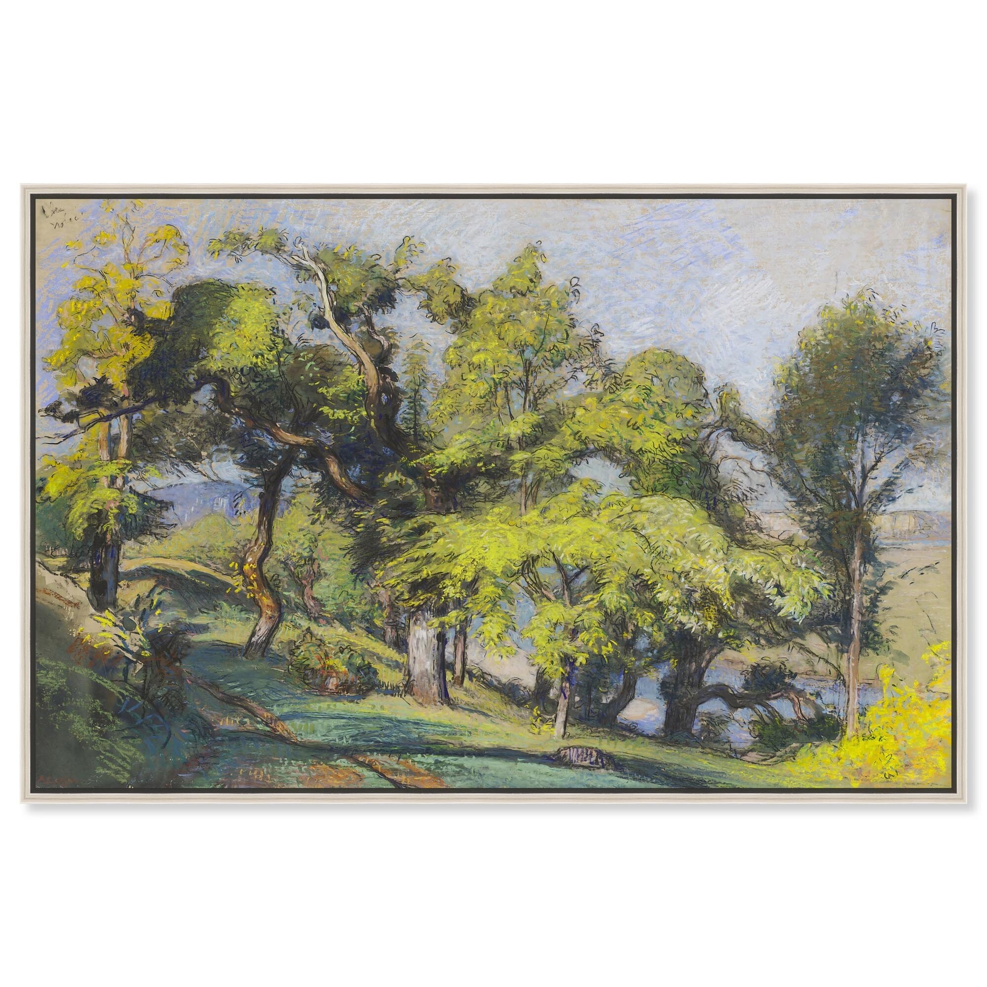 Trees above a River Canvas Classic Landscape Art by Art Remedy