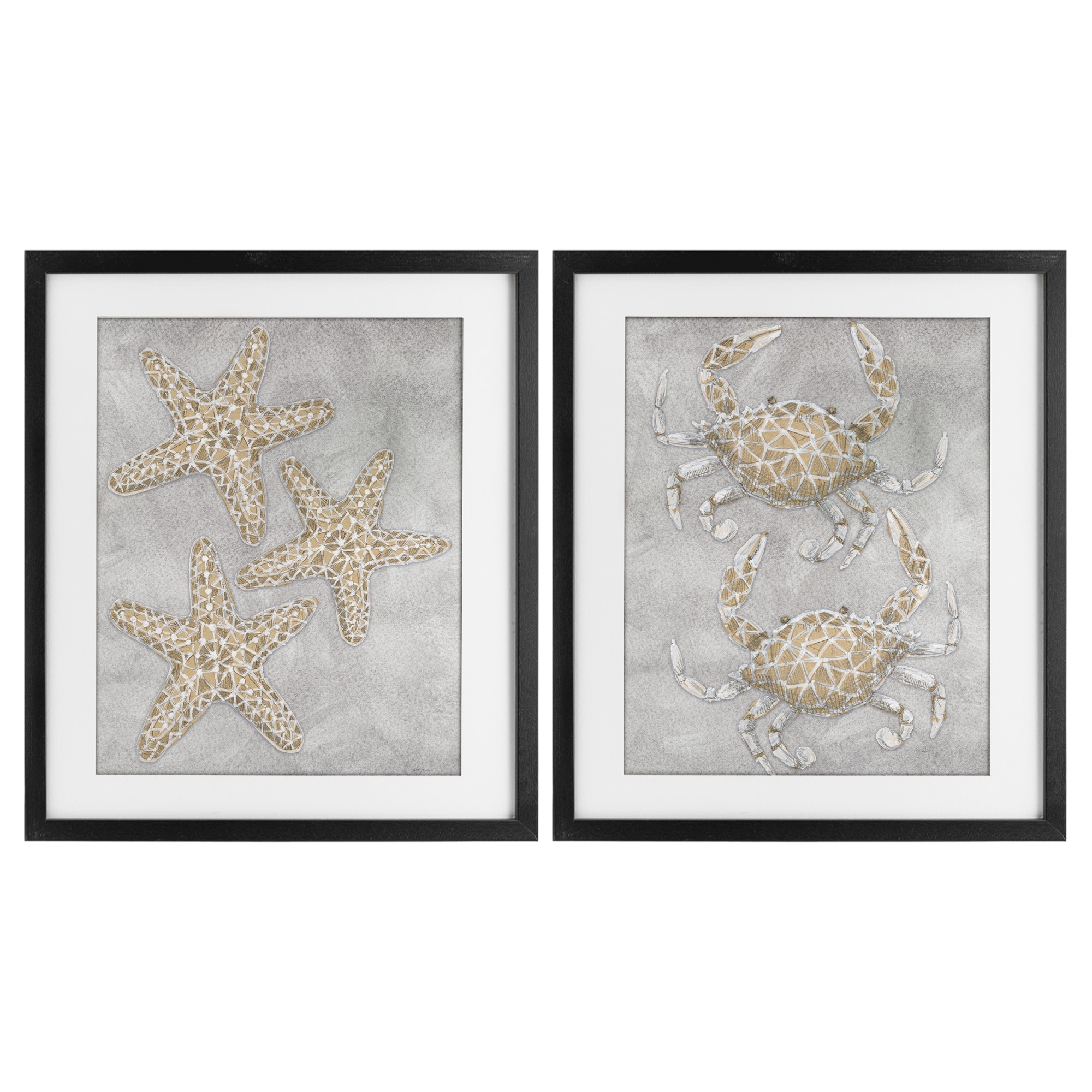 Stupell Grey Starfish & Crab Drawing Framed Art Design By Patti Bishop (Set of 2)