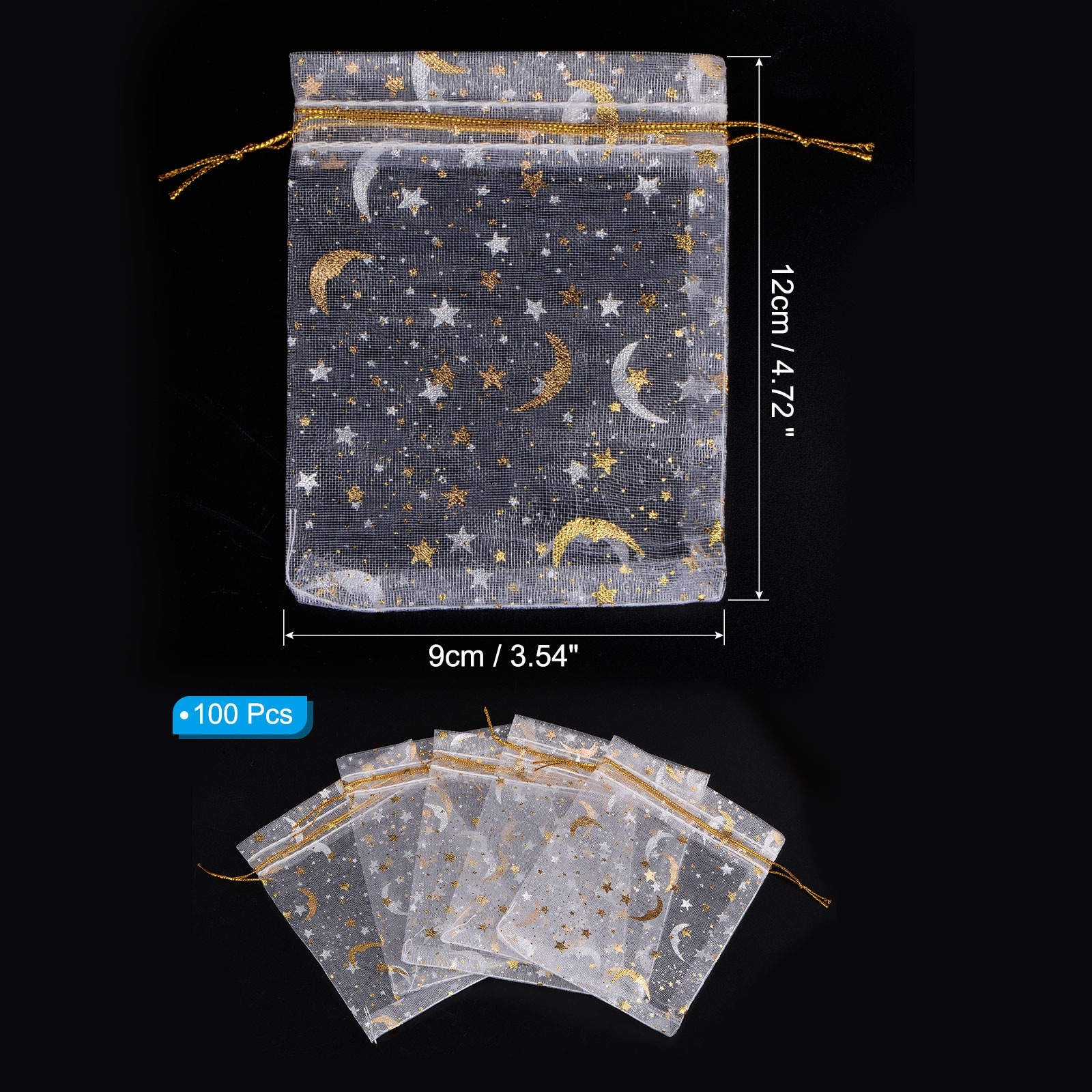 Organza Bags, Mesh Candy Pouch with Drawstring Gold Rose Flower Jewelry Gift Bags for Wedding Christmas Festival Makeup Supply