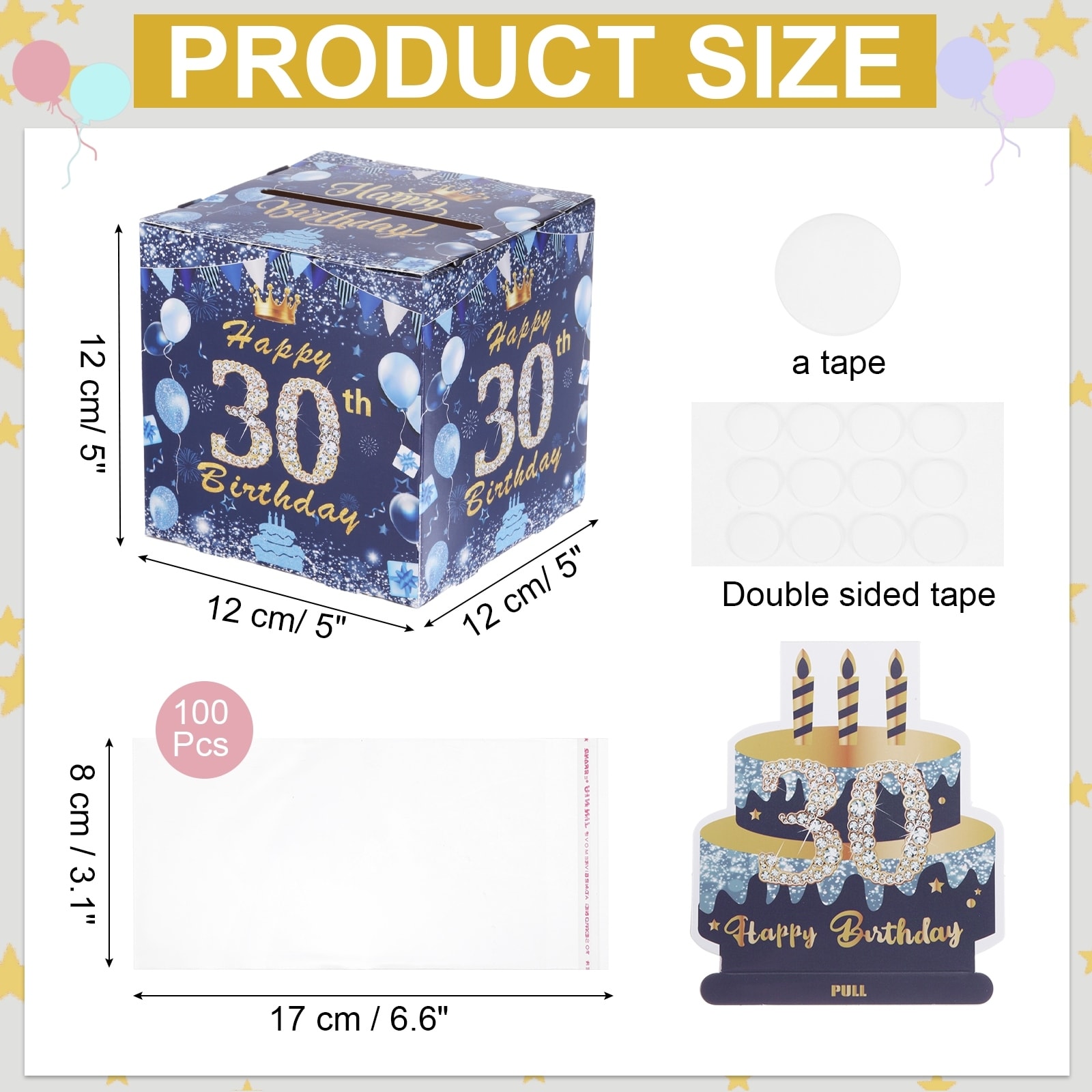 Birthday Money Box for Cash Gift, Birthday Money Pull Box with 100pcs Transparent Bags for Birthday Card Party Decorations