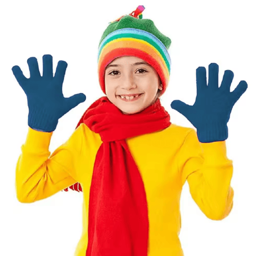 Winter Kids Full Finger Knit Gloves Warm Thickened Gloves For Boys And Girls Ages 5 To 9 pink