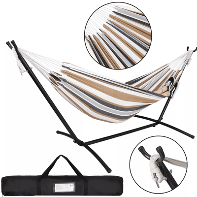 Heavy Duty 2 Person Hammock With 9FT Steel Stand Portable Double Hammock Bed For Patio, Garden, And Travel Heavy Duty 2 Person Hammock With 9FT Steel Stand Portable Double Hammock Bed For Patio, Garden, And Travel