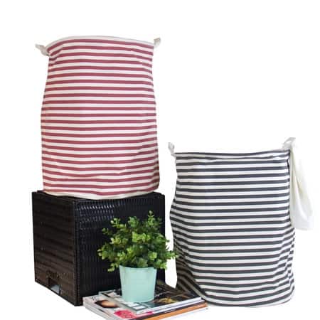 G Home Collection Black and Red Line Fabric Laundry Basket with Handles (Set of 2)