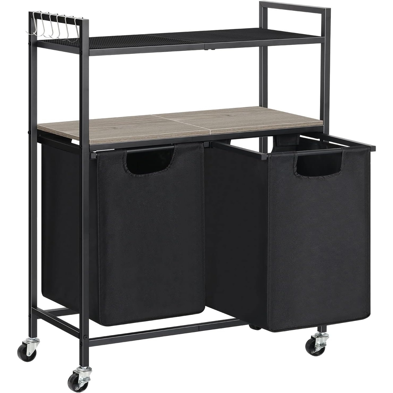 Household Essentials Double Hamper Cabinet, Wood Grain