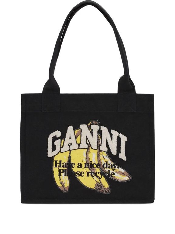 Banana Print Tote Bag - Black - Ganni Totes