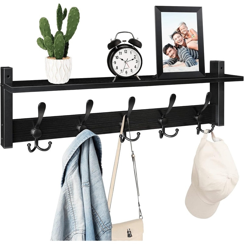 Wooden Wall Coat Rack with Shelf, 24" Entryway Hanger with 3 Hooks