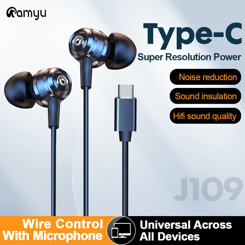 HiFi Stereo Wired Earbuds With Type C And 3.5mm, In Ear Headphones, Mic, Metal Build For Superior Sound type c Plug