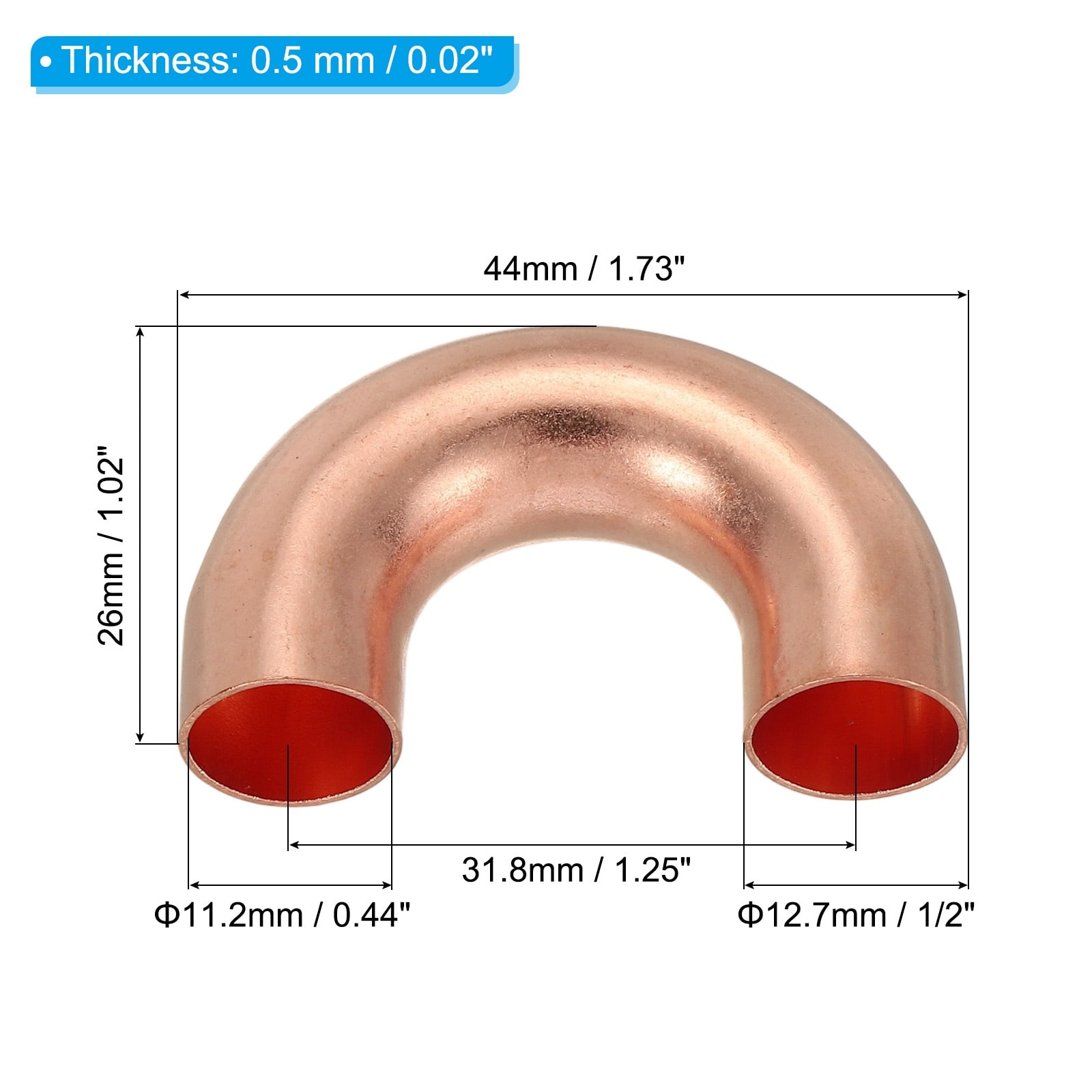Elbow Copper Pipe Fitting, 180 Degree Bend Welding Sweat Solder Connection for HVAC Air Conditioner Plumbing - Yellow