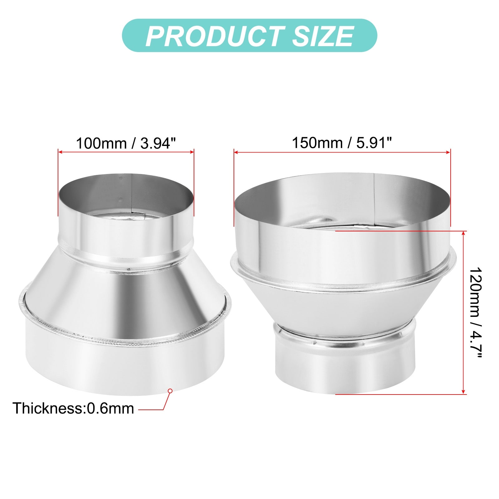 Duct Reducer Connector Adapter, 5 to 4 Inch Air Ducting Pipe Vent Hose - Silver