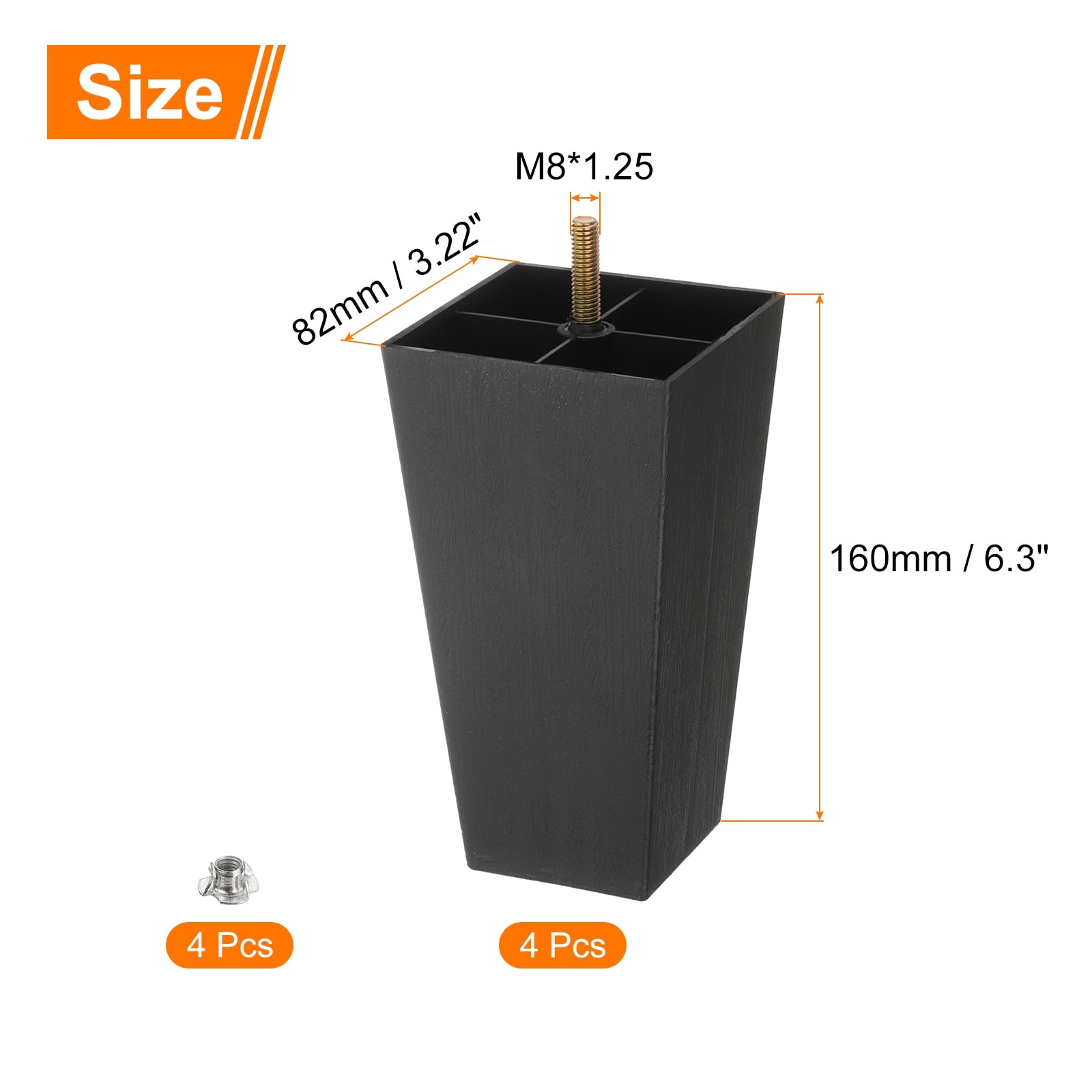 Plastic Furniture Legs, Table Sofa Cabinet Bed Legs Replacement Furniture Couch Feet with M8 Hanger Bolts - Black