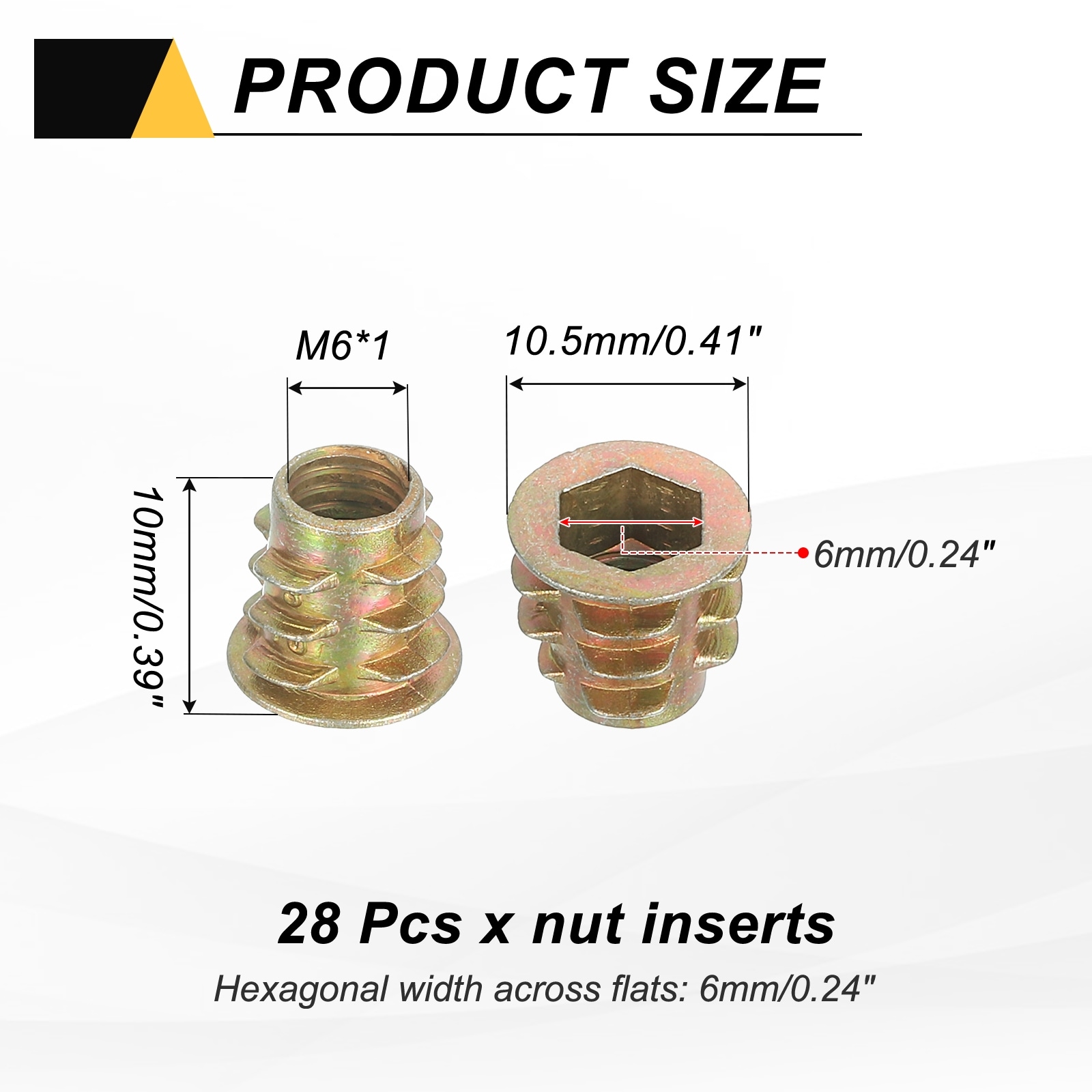 Threaded Inserts for Wood, Zinc Alloy Thread Inserts Nuts Hex Socket Drive Screw for Furniture, Cabinet, Tables and Chairs