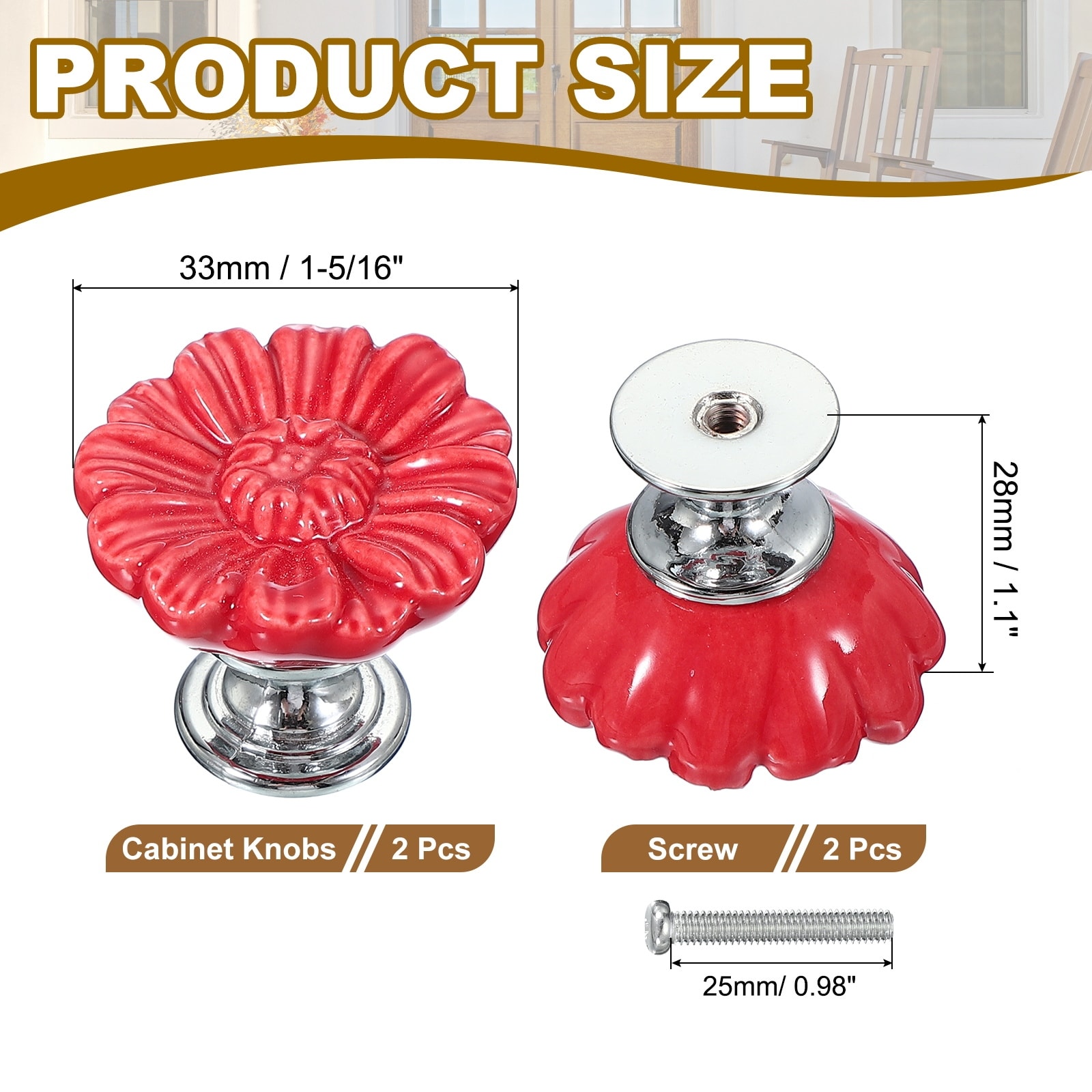 Vintage Floral Cabinet Knobs, Ceramic Round Drawer Knobs Dresser Knobs Door Hardware Pull Handles with Screw