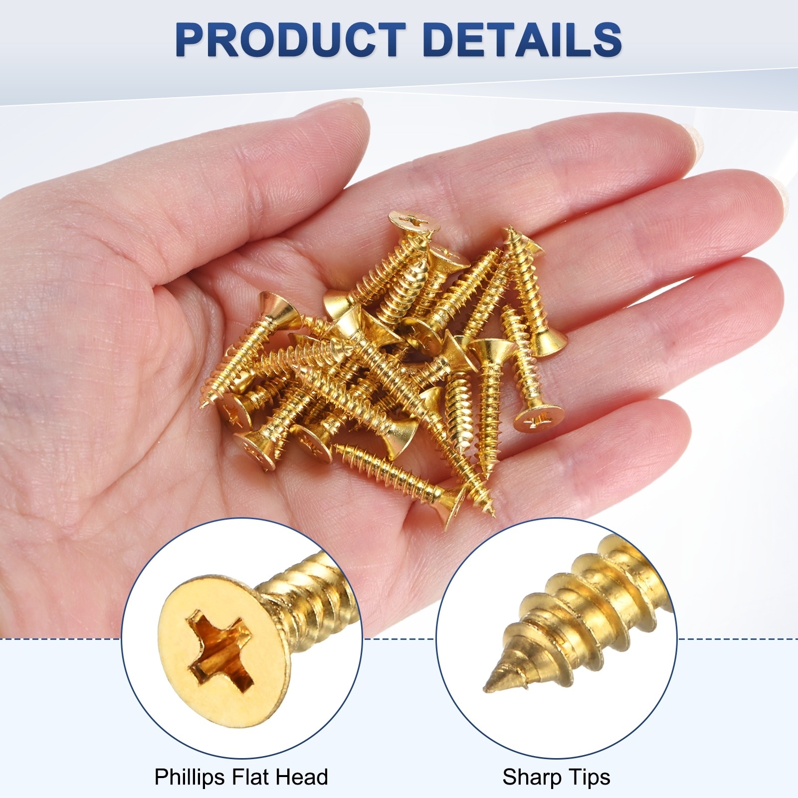 Brass Wood Screws, Slotted Drive Flat Head Self Tapping Screw Countersunk for Woodworking Furniture - Gold