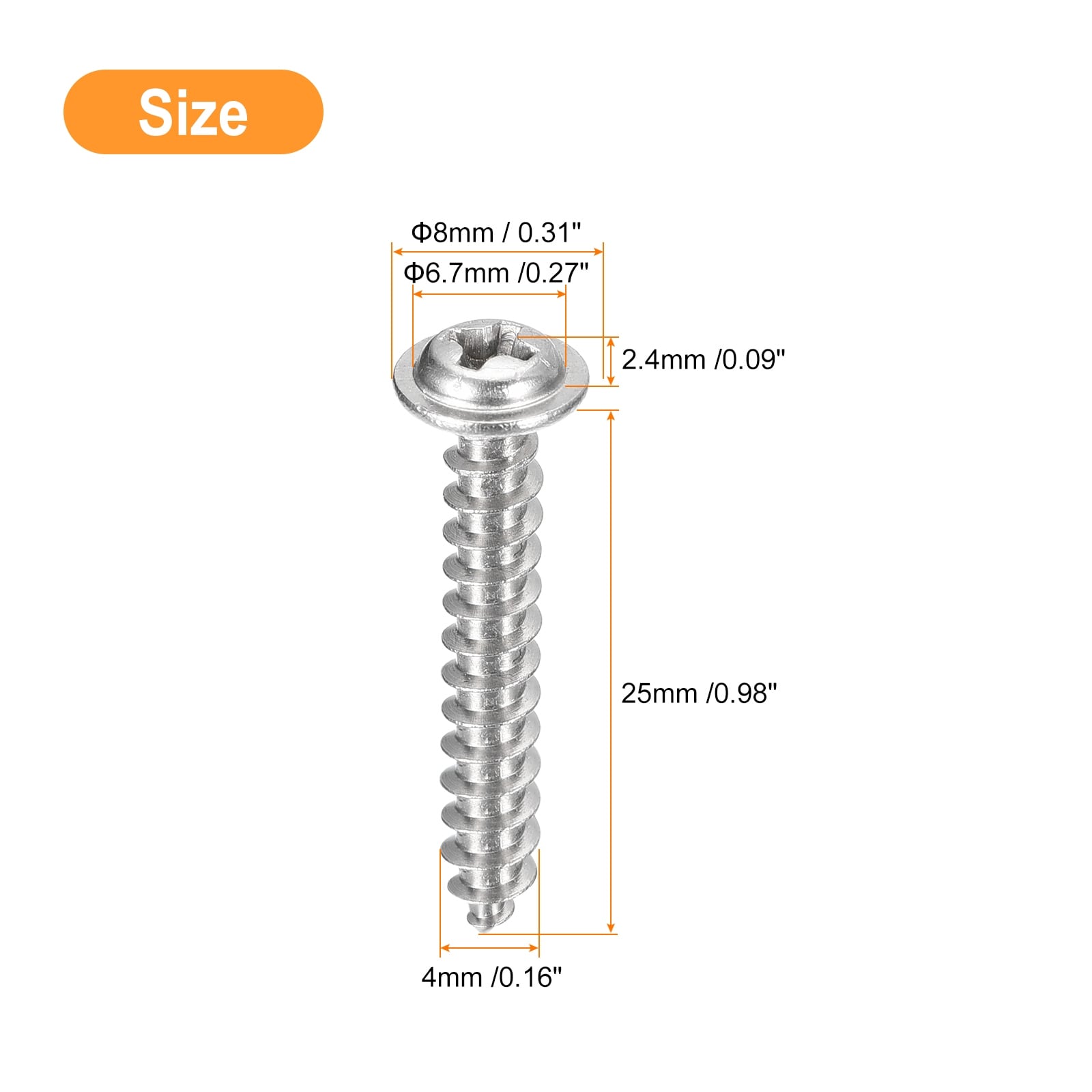Phillips Pan Head Self-tapping Screw with Washer, 304 Stainless Steel Wood Screw Full Thread