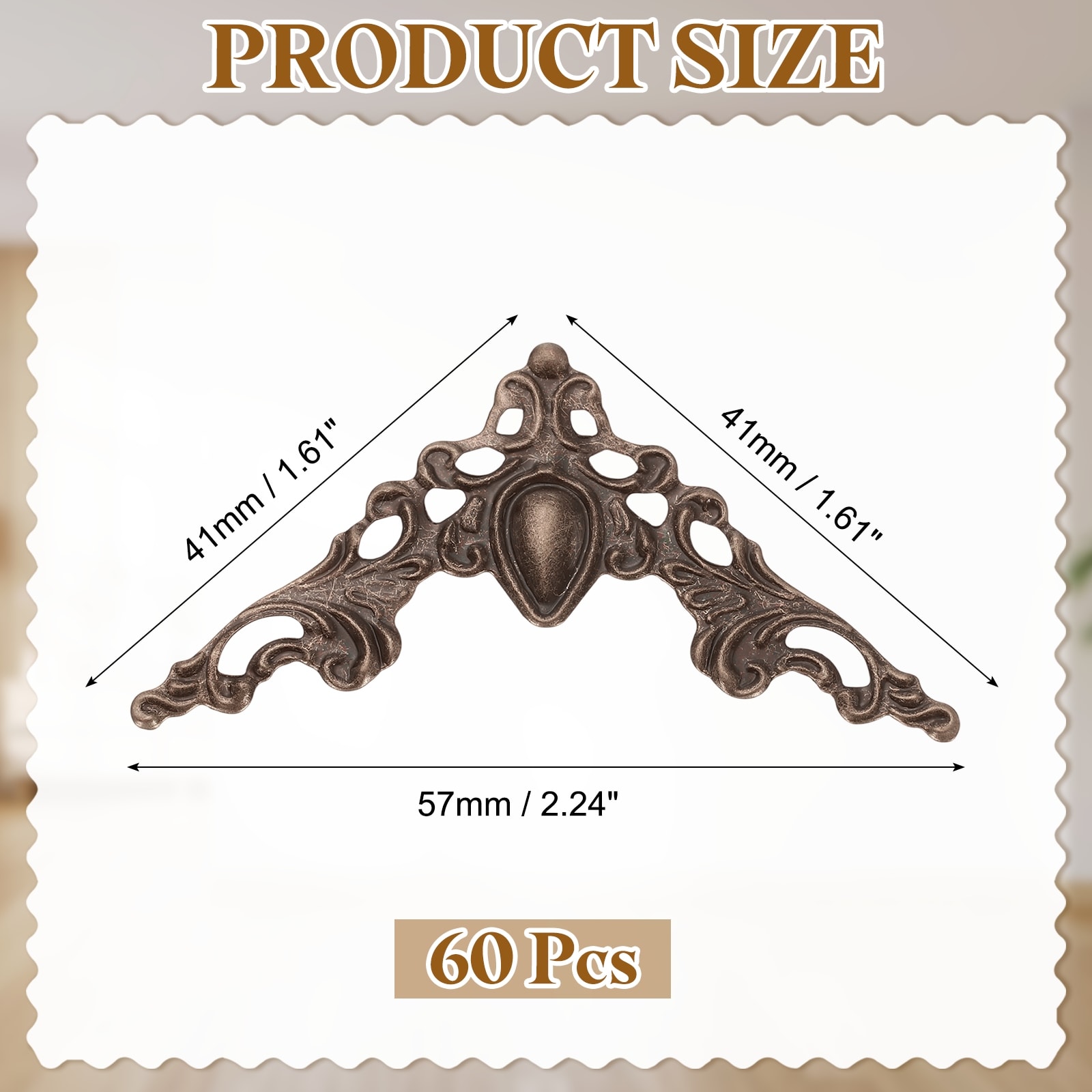 Vintage Flat Corner Bracket, Metal Desk Book Corner Protectors Hollow Decorative Edge Cover for Furniture Jewelry Box Gifts Box