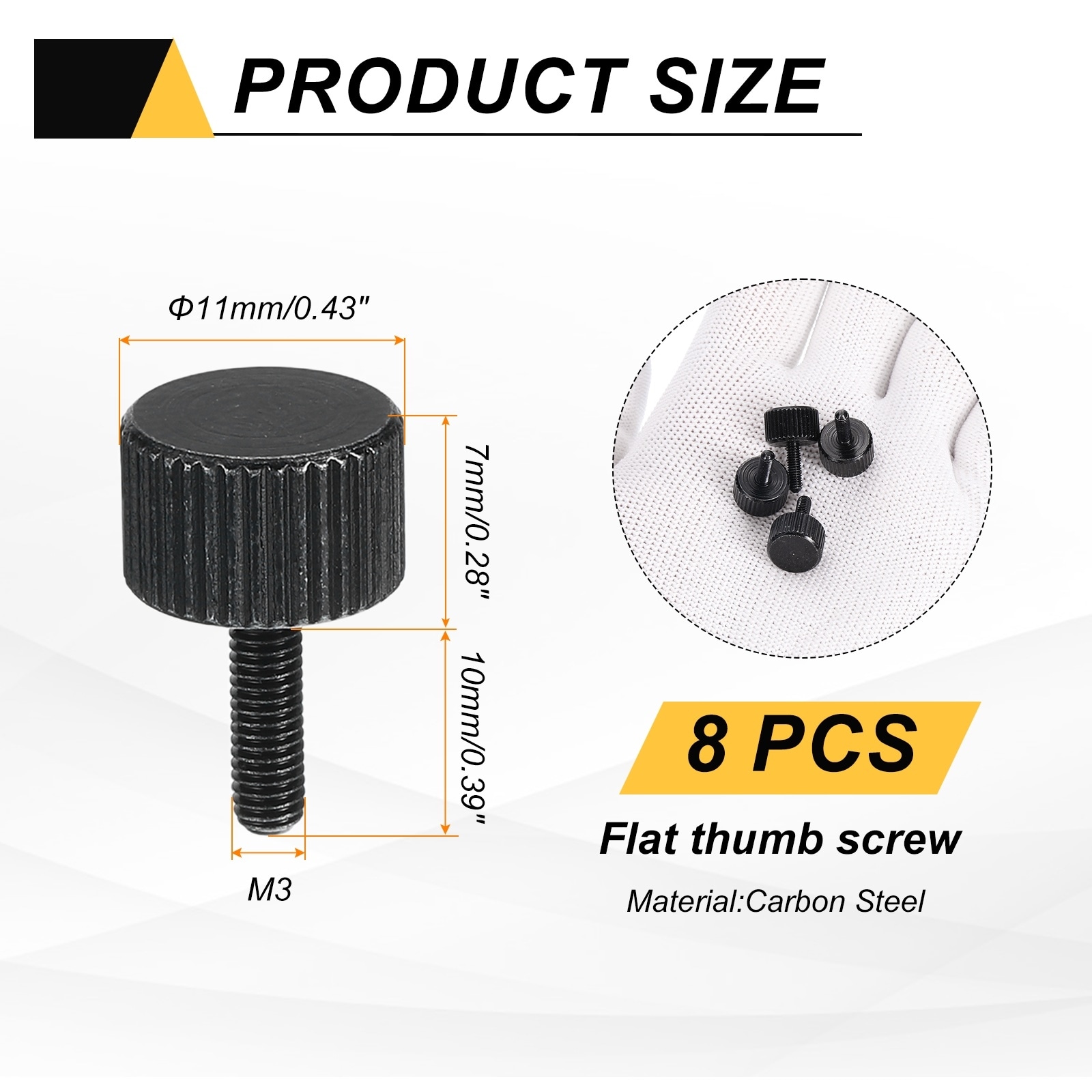 Knurled Thumb Screws, Steel Flat Head Thumb Screws Zinc Plated Metric Knurled Head Bolts with Shoulder Grip Knobs - Black