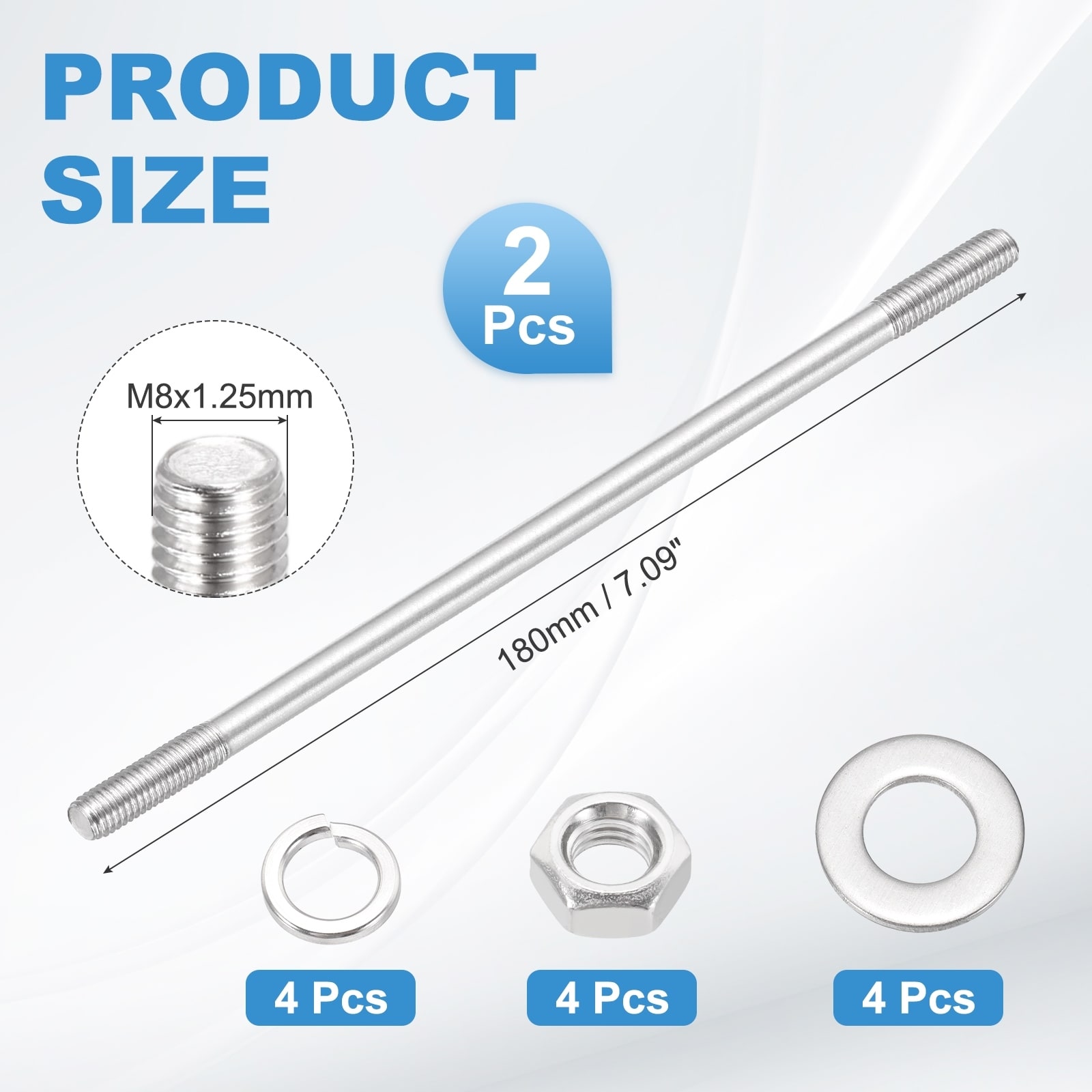 Double Ended Stud Screws,304 Stainless Steel Rod with Nut Washer