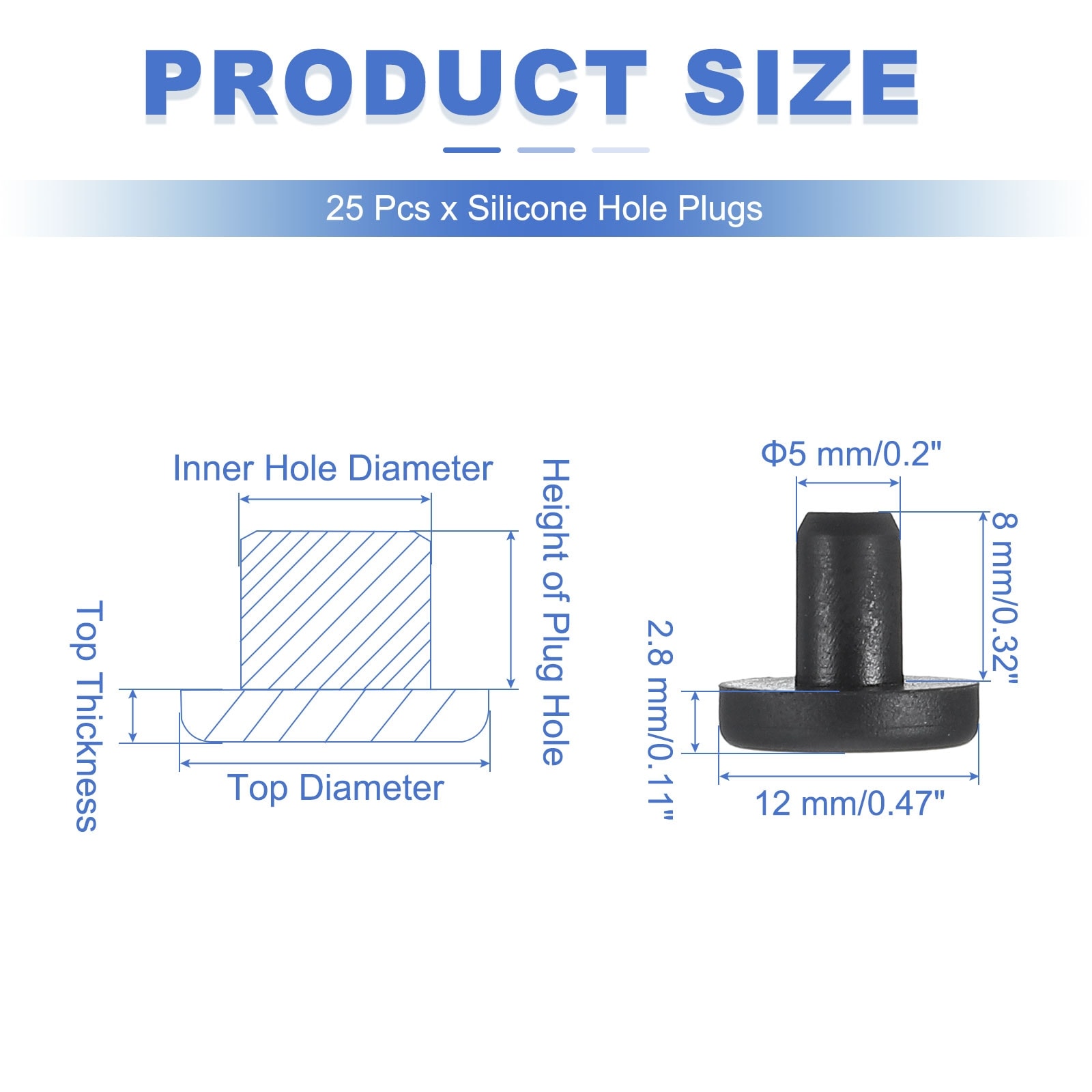 t Shaped Solid Silicone Stopper, Rubber Hole Plugs - Black