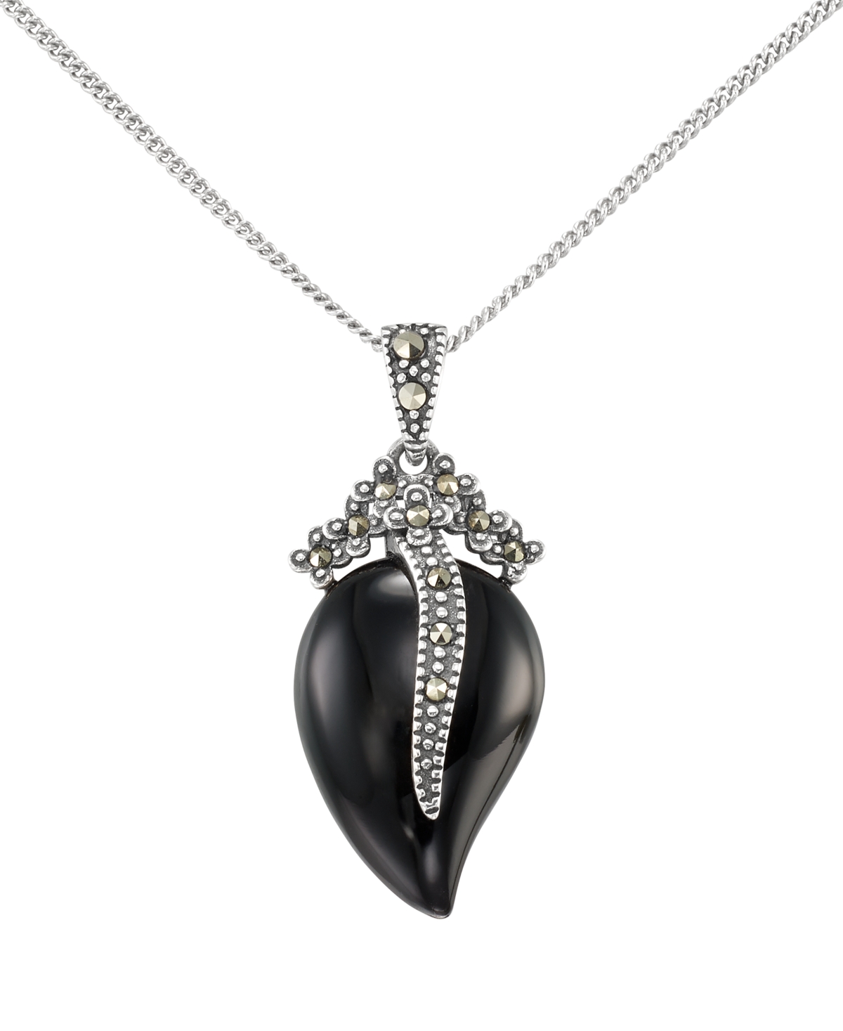 Macy's Marcasite (0.12 ct. t.w.) and Onyx (5 ct. t.w.) Pendant Necklace in Sterling Silver - Onyx