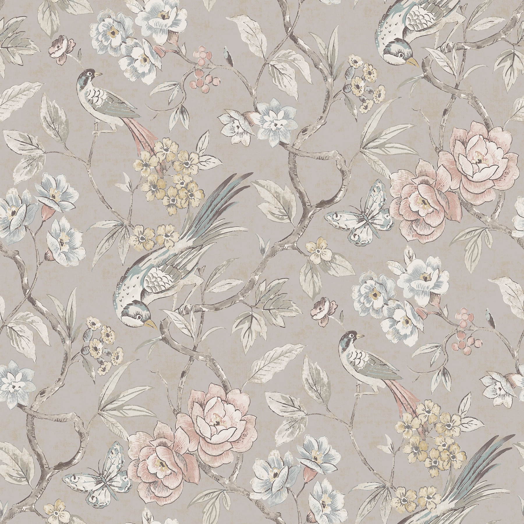 NuWallpaper Waverly Aviary Garden Grey Peel and Stick Wallpaper - N/A