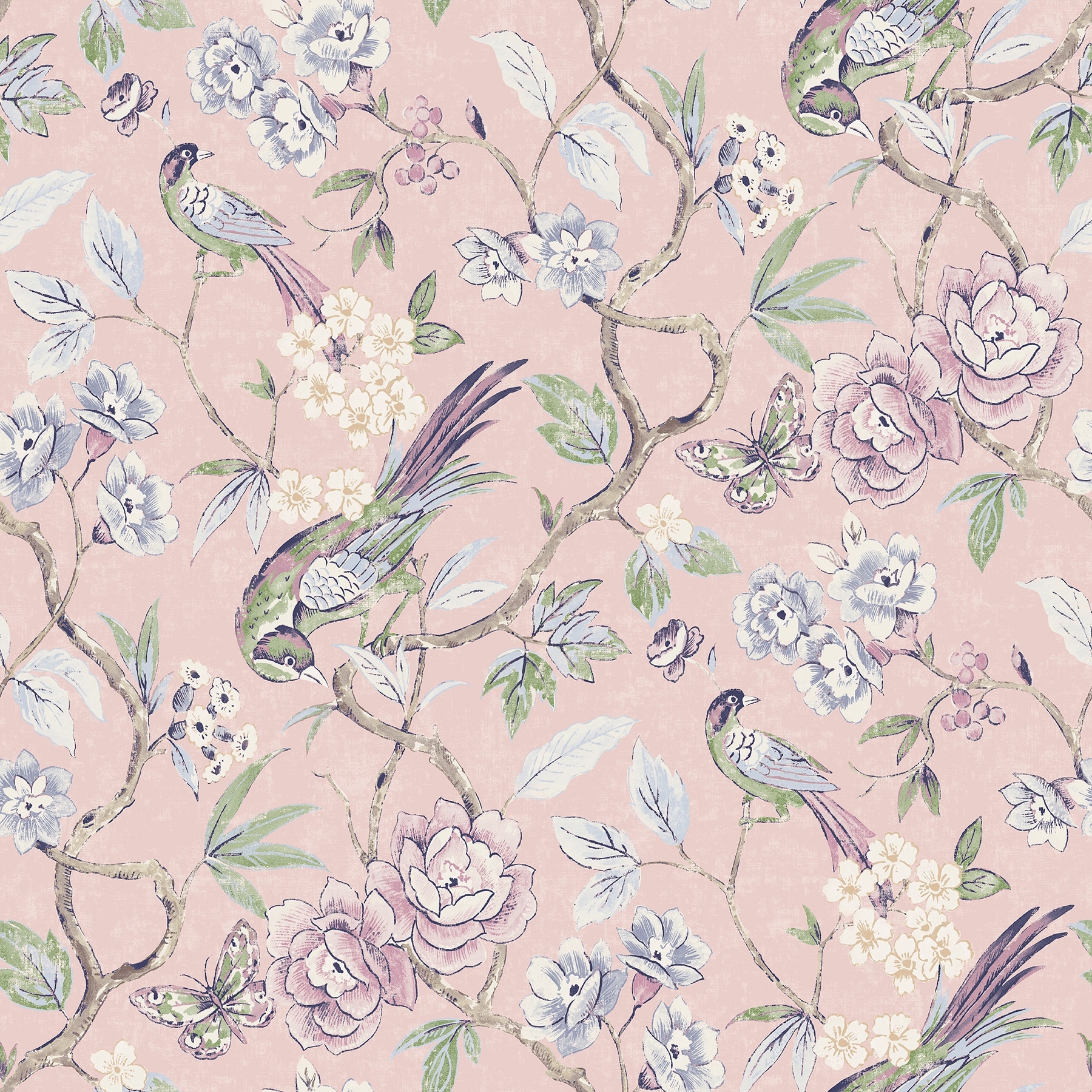 NuWallpaper Waverly Aviary Garden Pink Peel and Stick Wallpaper - N/A