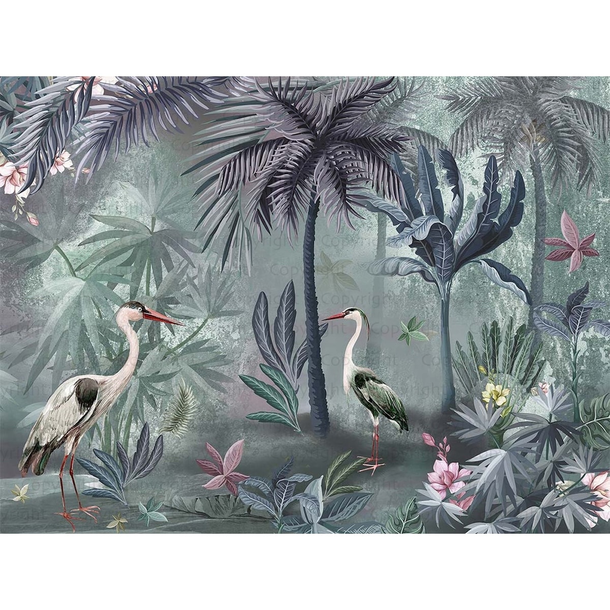 Serene Tropical Oasis Wallpaper Mural Herons and Palm Trees