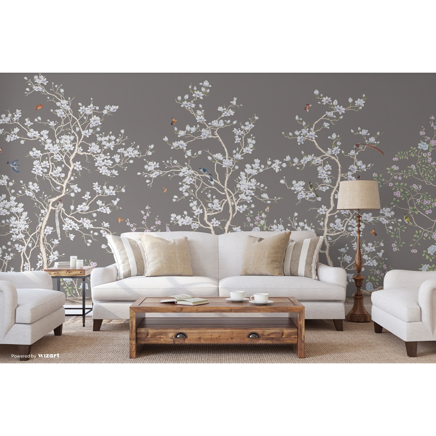 Serene Blossom Hand-Illustrated Chinoiserie Wallpaper Mural
