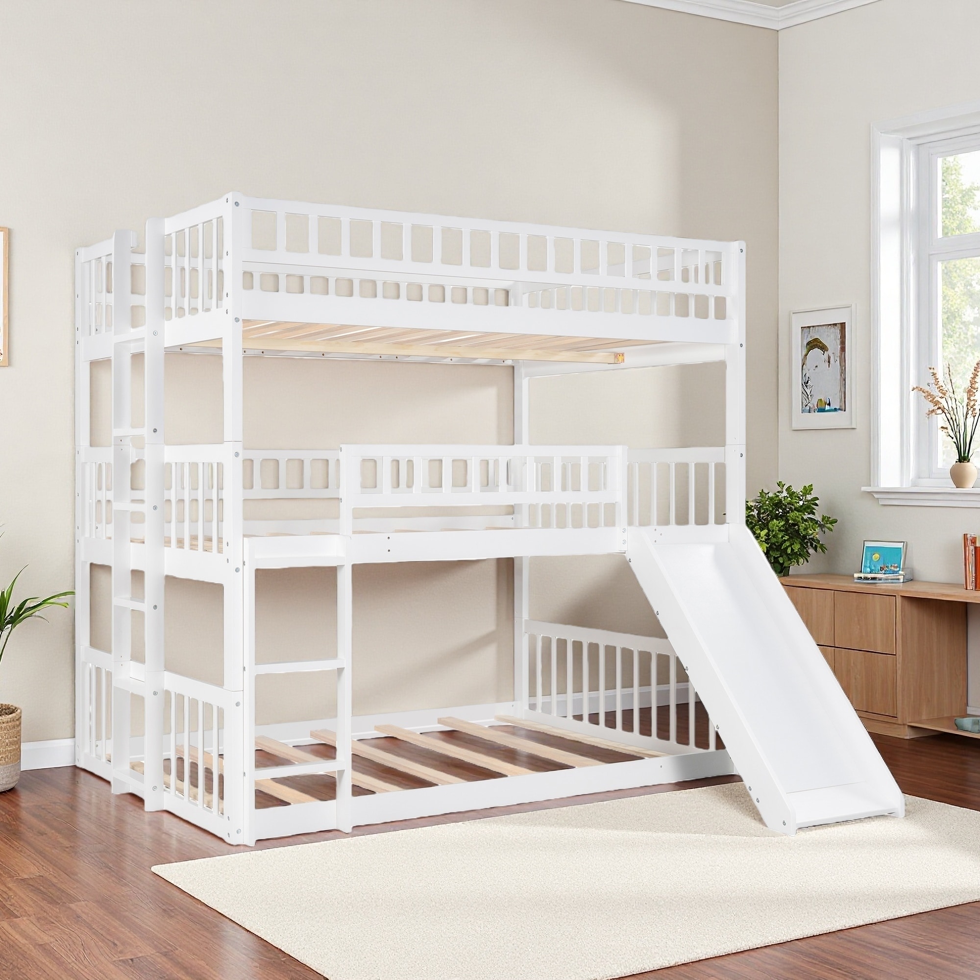 Full over Full Triple Bunk Bed with Slide