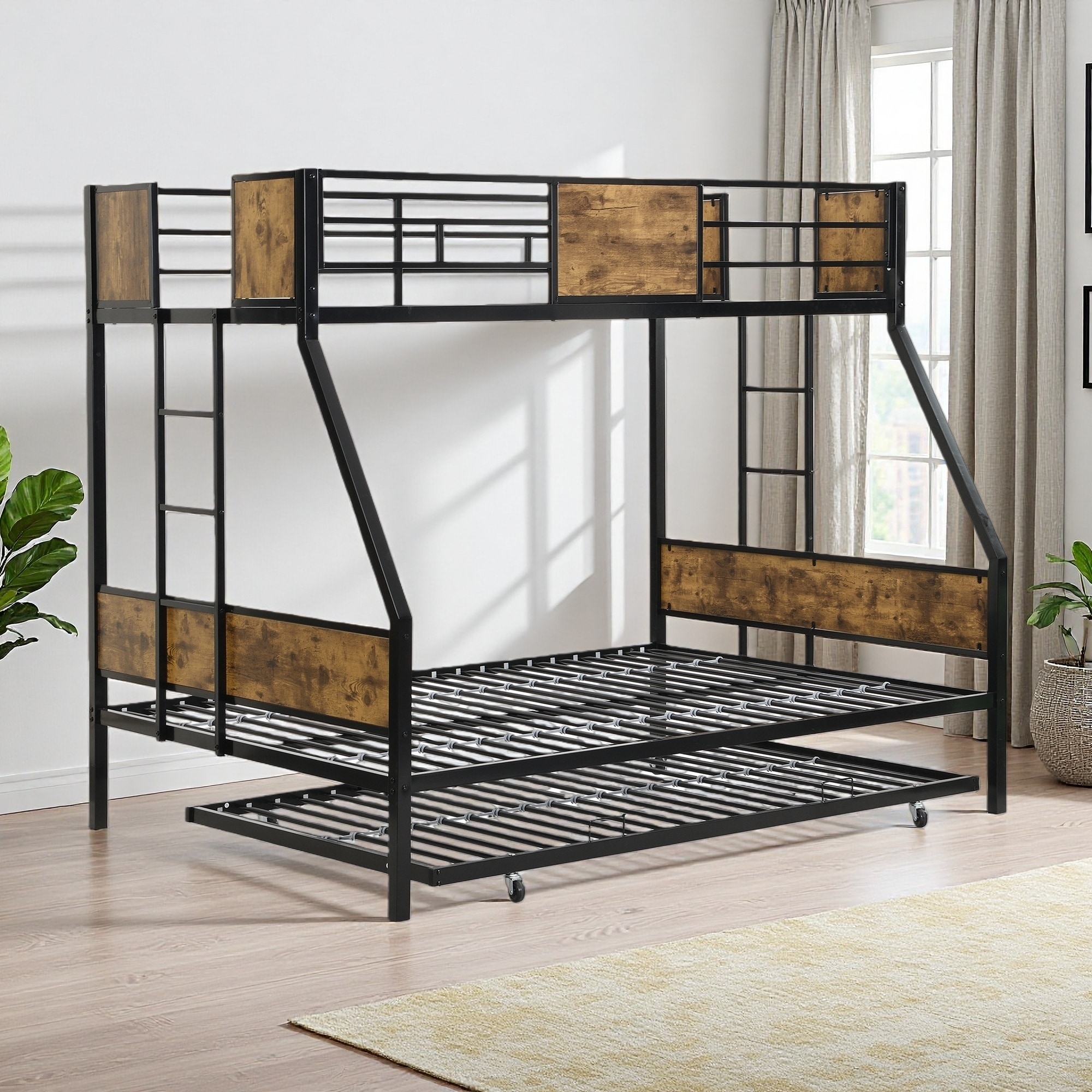 Twin over Full Metal Bunk Bed with Trundle
