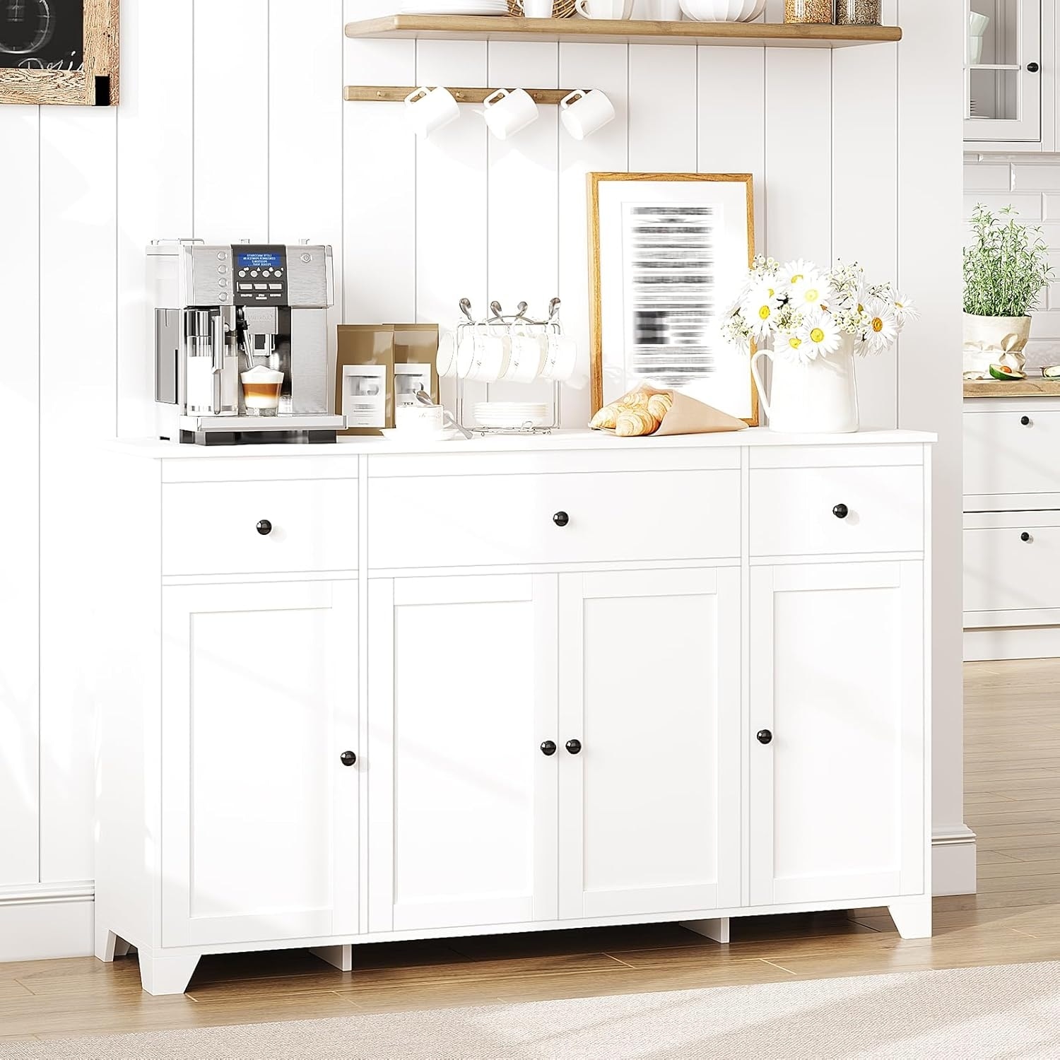 55 in Sideboard Buffet Cabinet with Storage, Coffee Bar with Adjustable Shelves