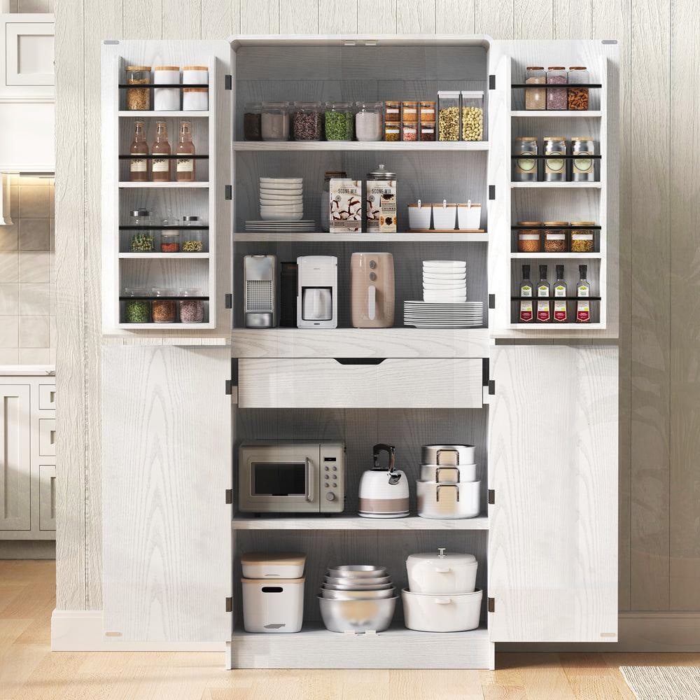 72 In Tall Arched Kitchen Pantry Cabinet with Shelves and Drawer White