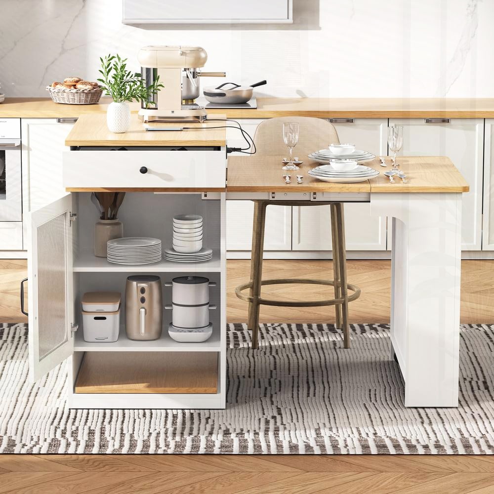 59.5 in Kitchen Island with Extendable Table and Dual Storage White