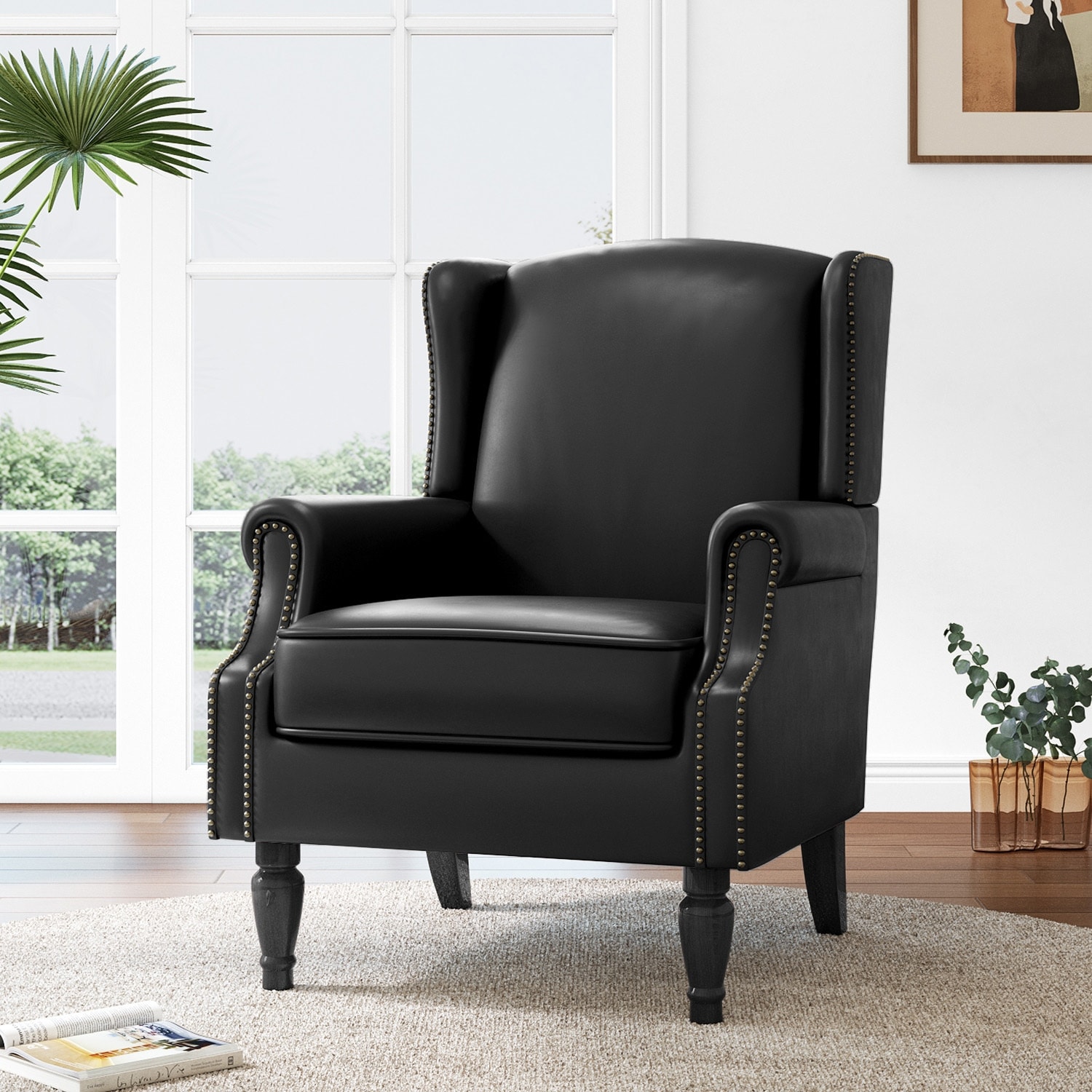Living Room High Back Accent Chair, Living Room Upholstered Wingback Chair with Nailheads Decoration