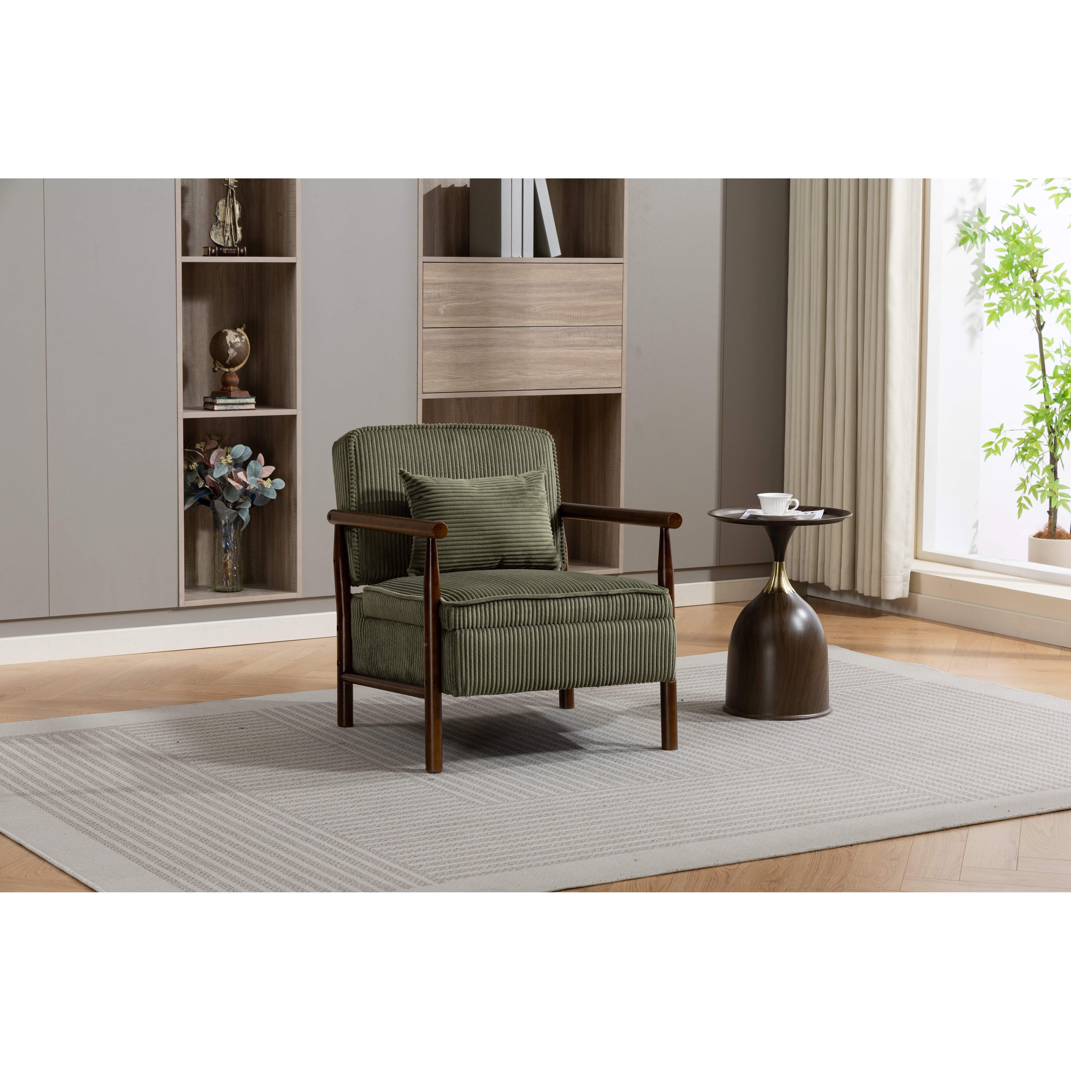 Mid Century Modern Accent Chair with Wood Frame, Upholstered Living Room Chairs with Waist Cushion