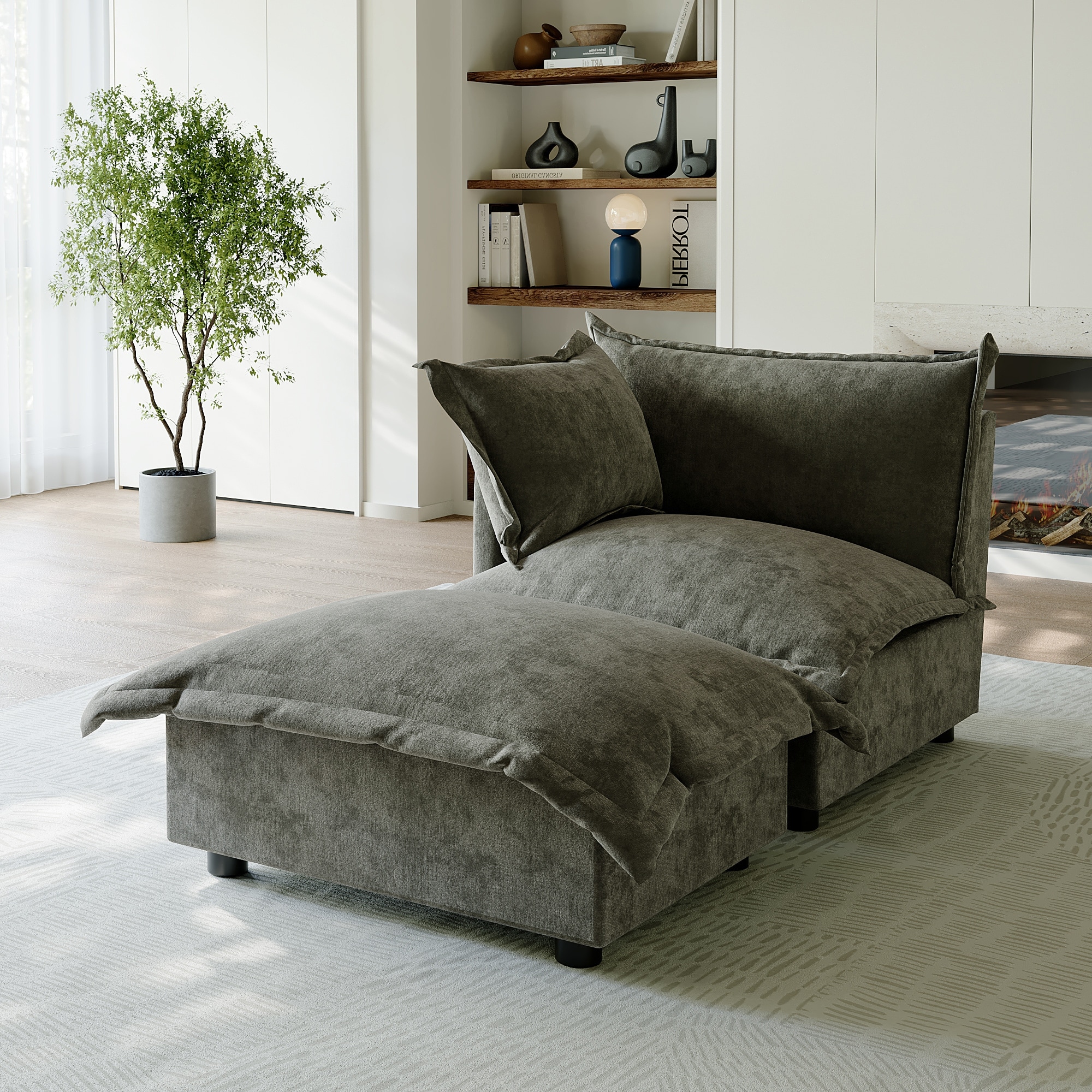 Casual 40"W Oversized Soft Comfy Cloud Chenille Chaise Lounge with Ottoman