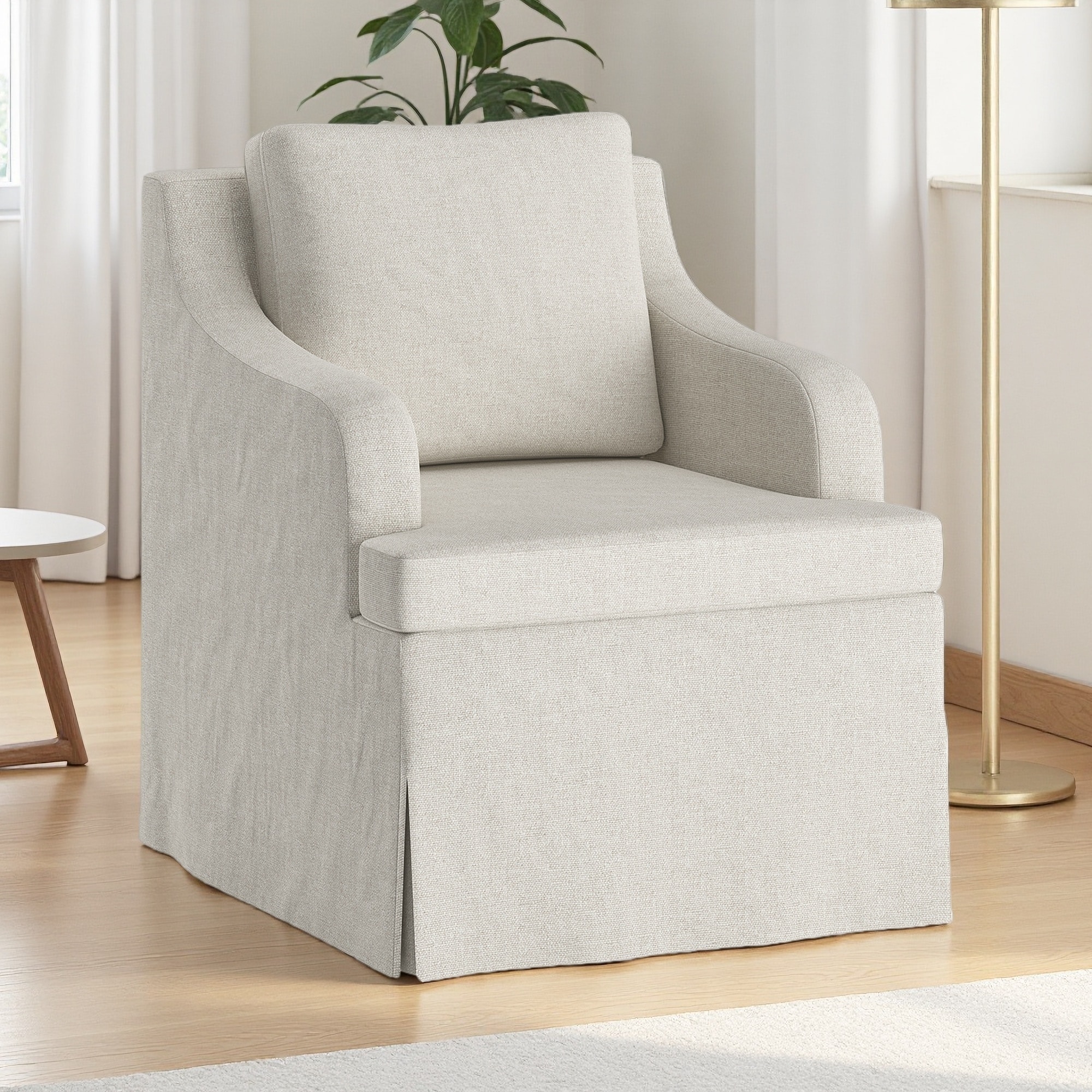 Extra Wide Armless Desk Chair with Adjustable Height and Linen Upholstery Criss Cross Swivel Base