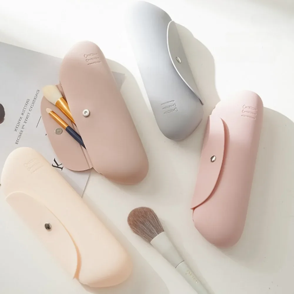 Portable Travel Makeup Brush Holder, Silicon Cosmetic Brushes Bag & Cosmetic Case For Travelling, Getting Ready & Makeup grey
