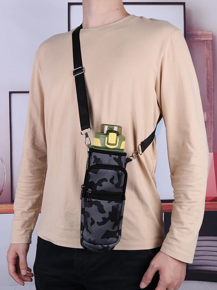 Portable Water Bottle Bag With Adjustable Strap And Phone Pocket black