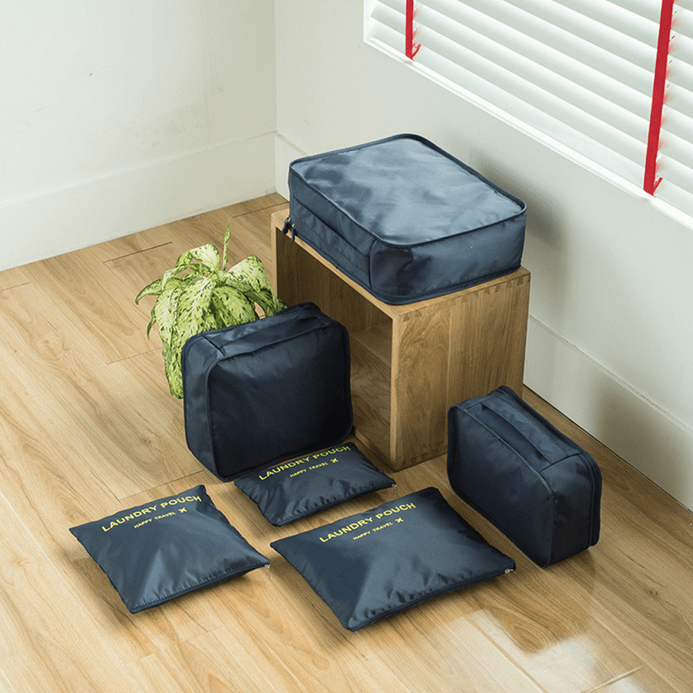 Waterproof Luggage Clothing Bag With Zipper, 6 Pcs Set Travel Storage Bag, Large Capacity Pink Blue Grey Organizer 6pcd Navy Blue
