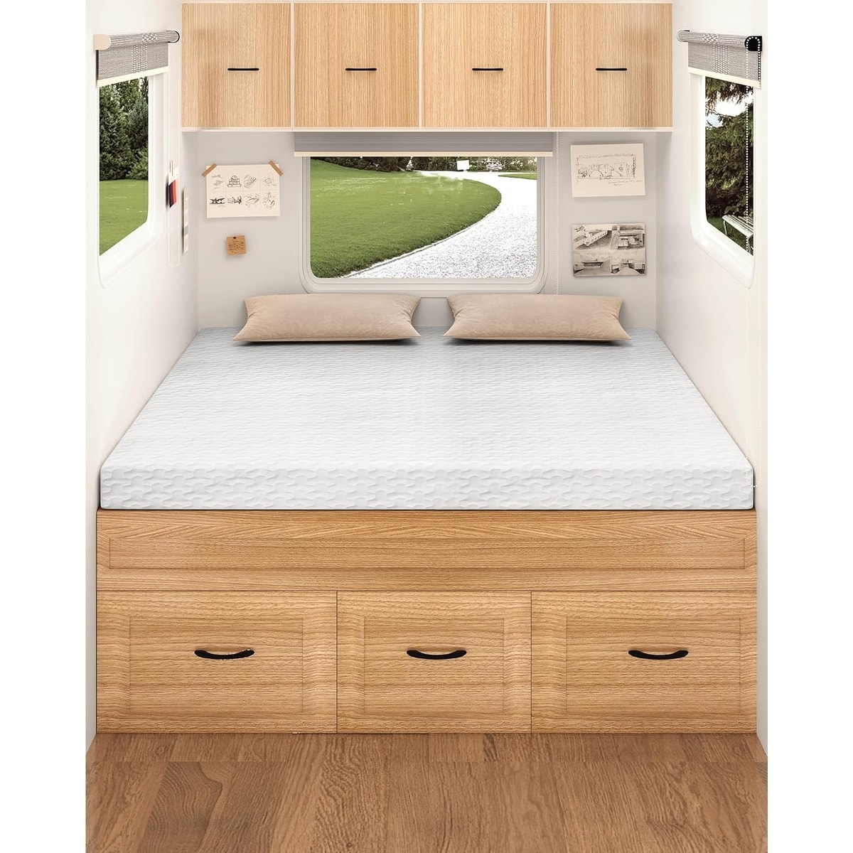 4-Inch Memory Foam RV Short Queen Mattress, Ultra-Soft Bamboo Cover, CertiPUR-US Certified, 60x75 Inches