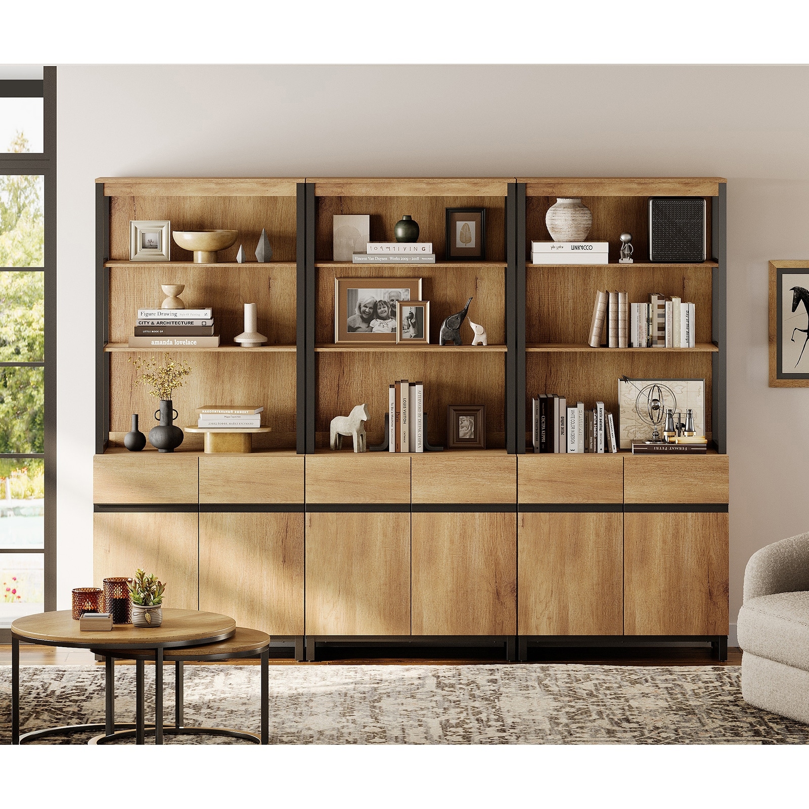 WAMPAT Modern 72" Tall Bookcase with Metal Base and Adjustable Shelves, Library Book Shelf with Storage Cabinet