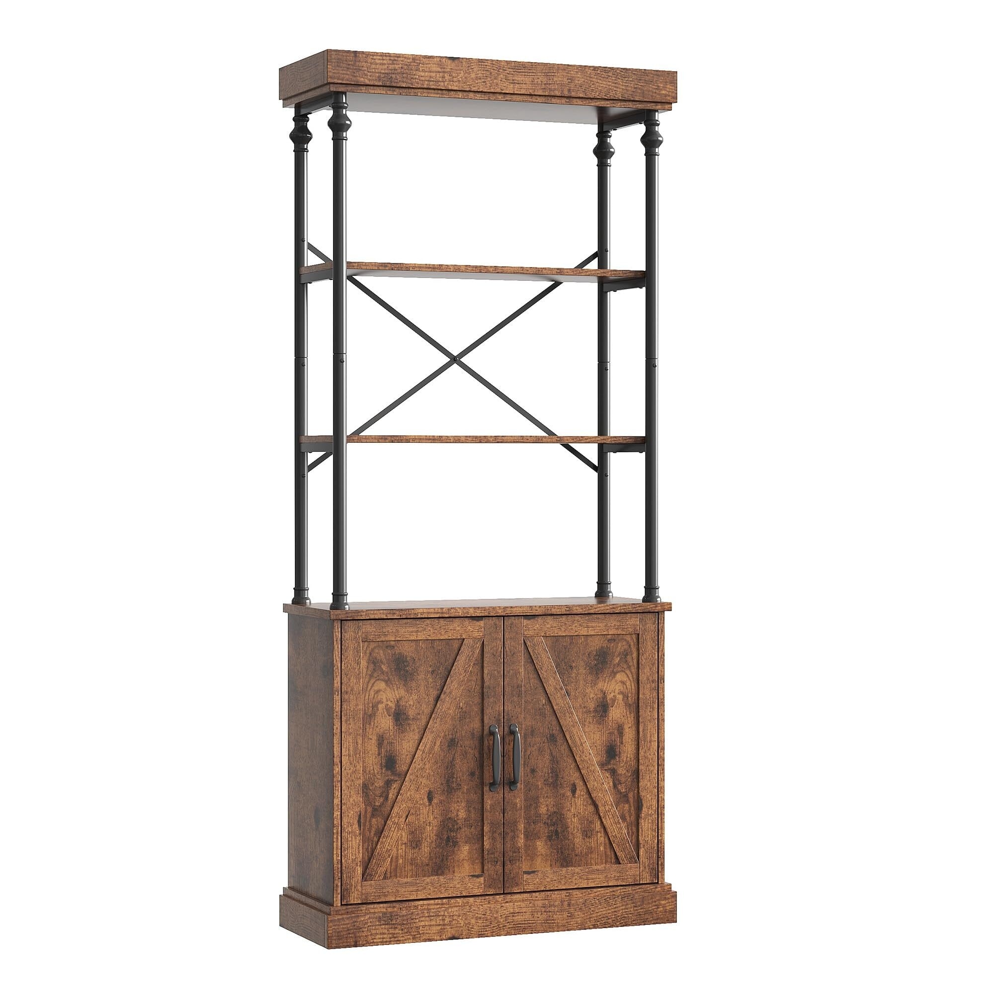 73.62" Industrial Wooden Bookshelf w/ Doors & Cabinet, Open Storage Rack