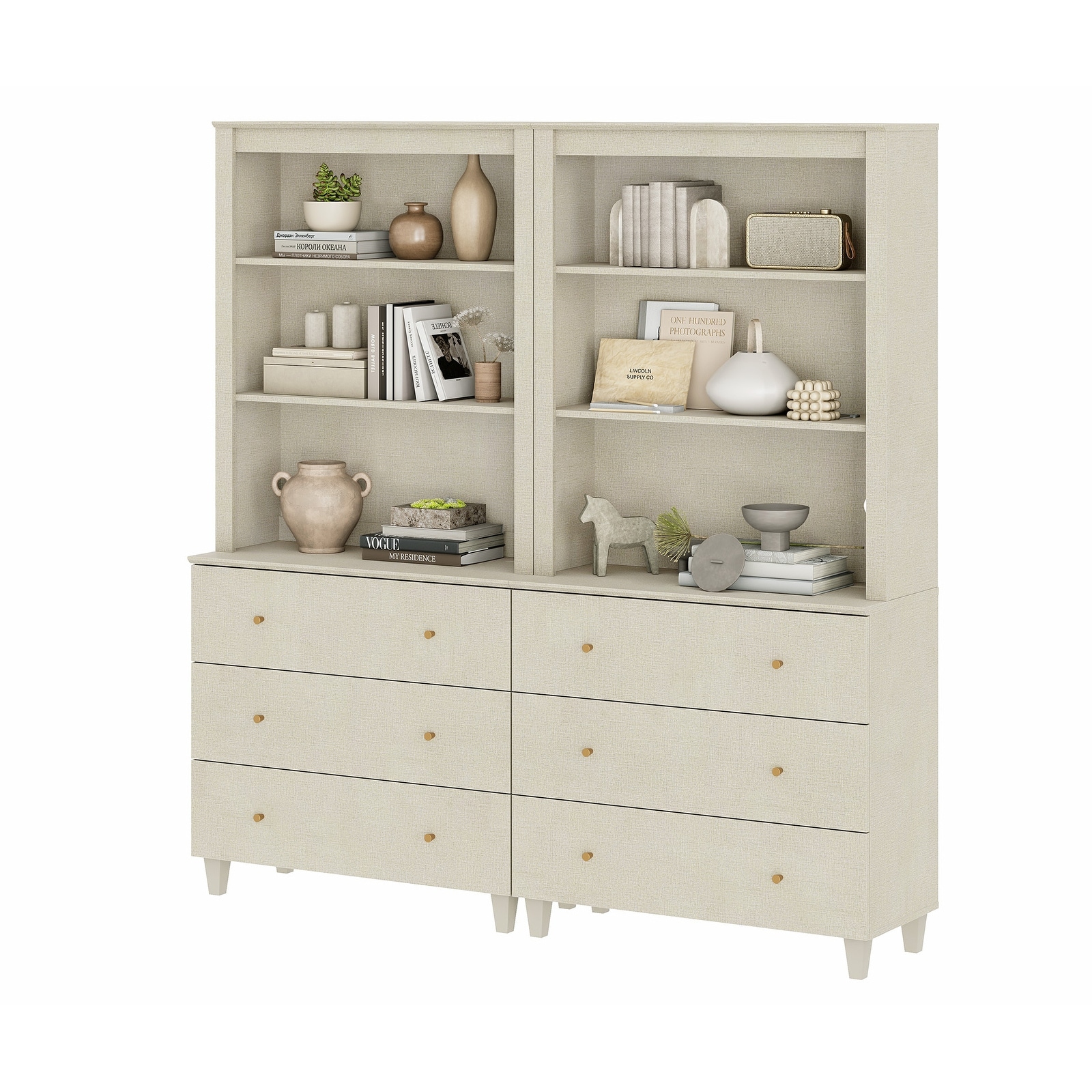 Modern 71" Tall Bookcase with Drawers & Open Shelves for Home Office