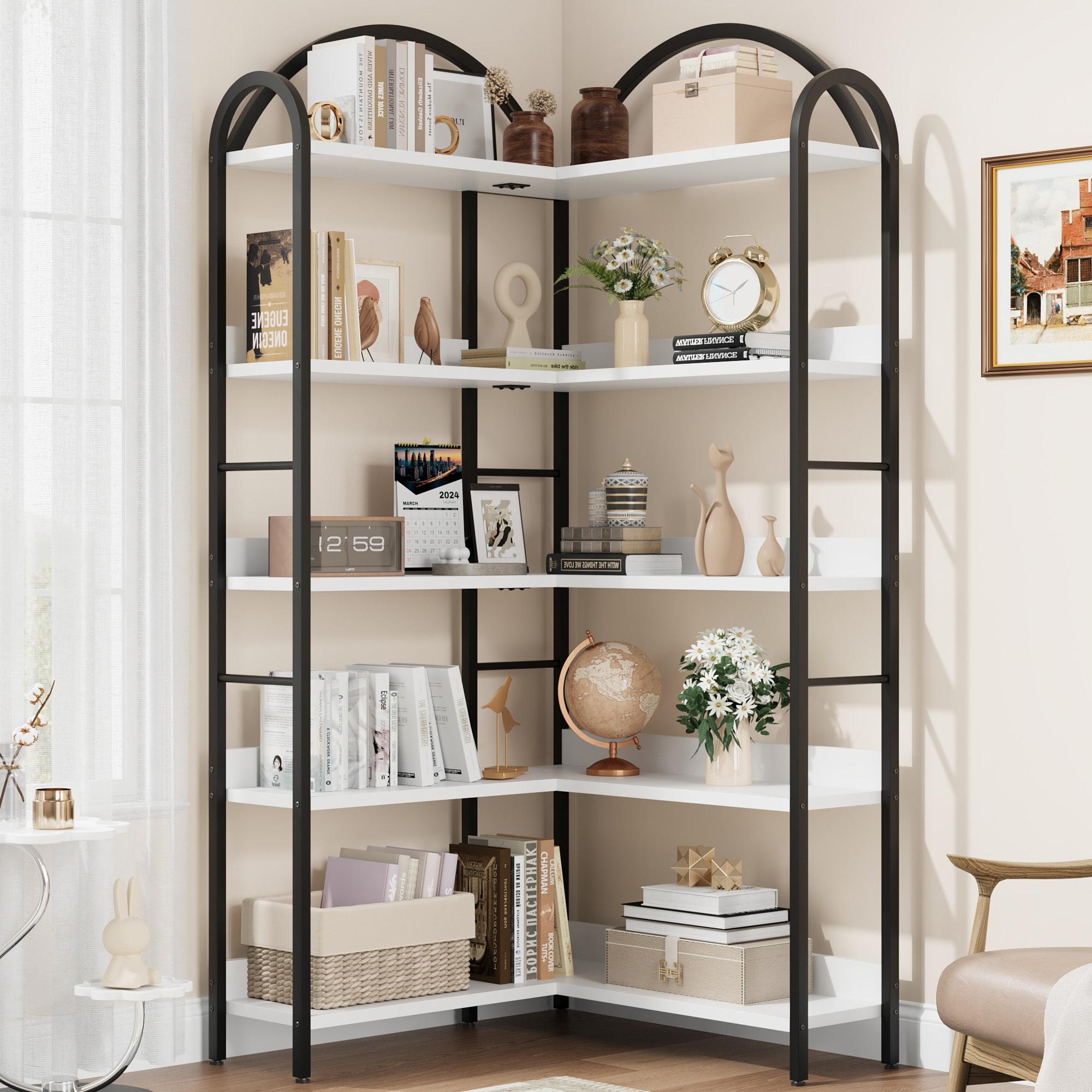 Reversible Corner Bookcase, 5-Tier Industrial l-Shaped Bookshelf with Metal and Wood Open Shelves