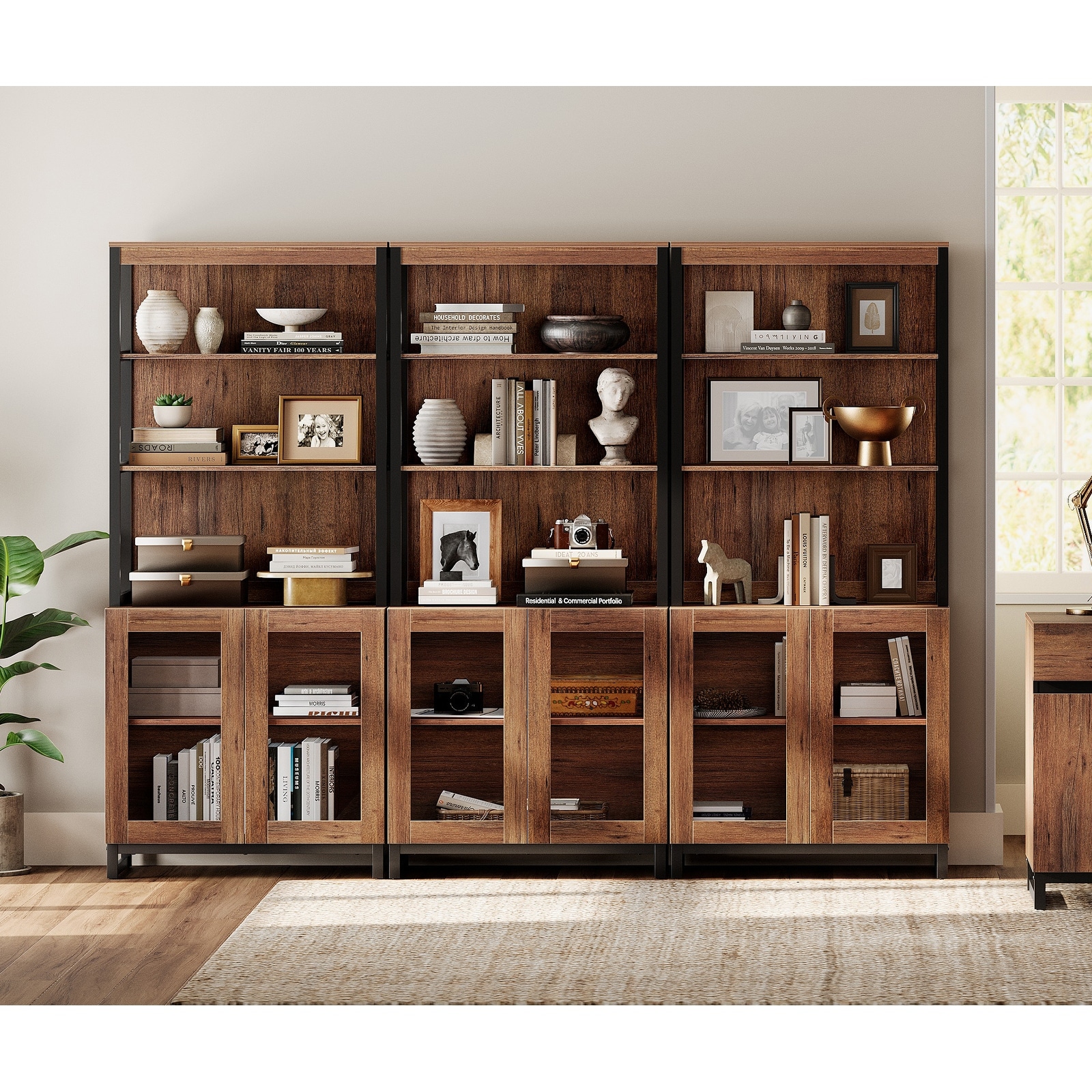 3 PCS Modern 72" Tall Bookcases with Glass Doors and Adjustable Shelves for Home Office, Living room.