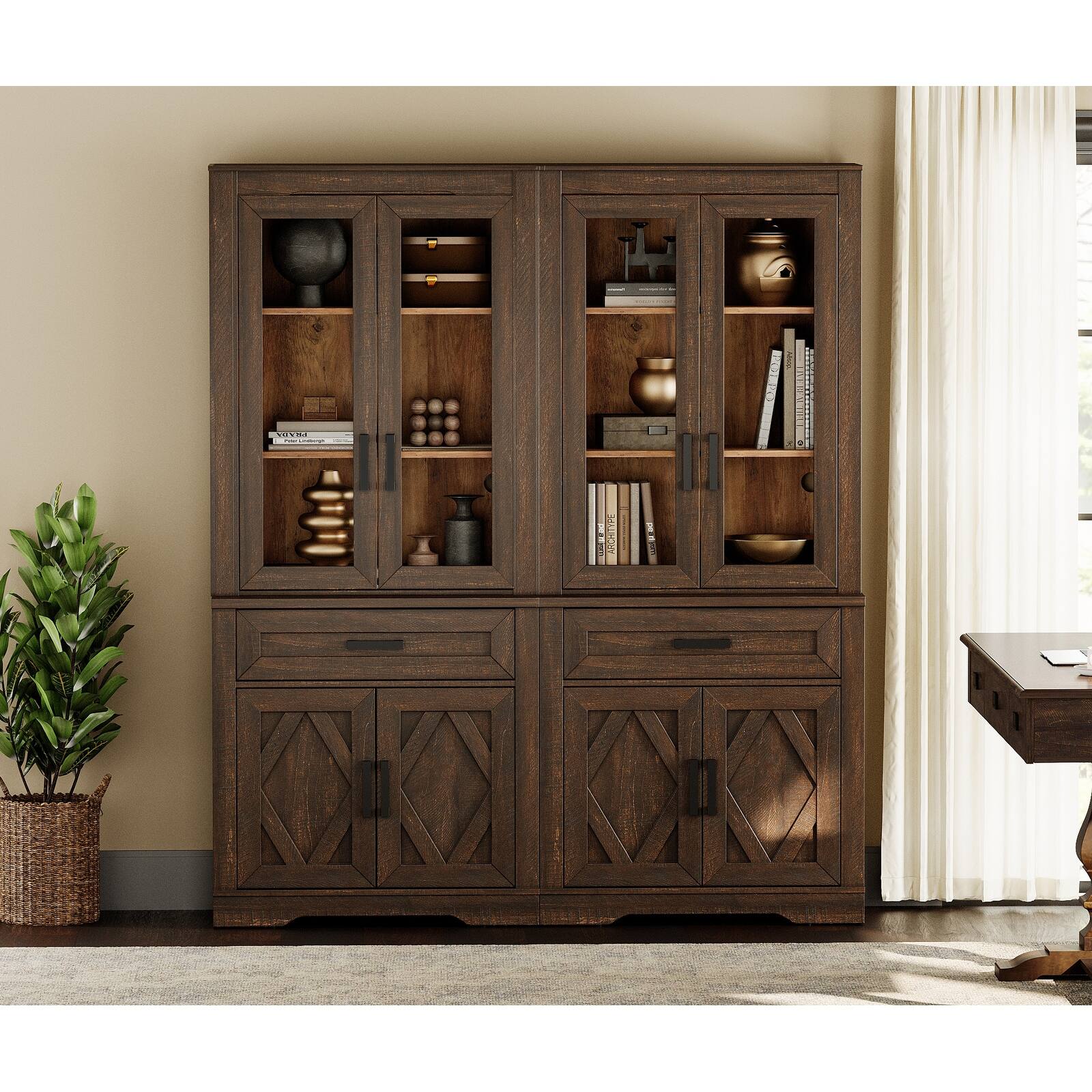 5 Tier Bookcase with Barn Door,73.3" Tall Open Storage Bookshelf