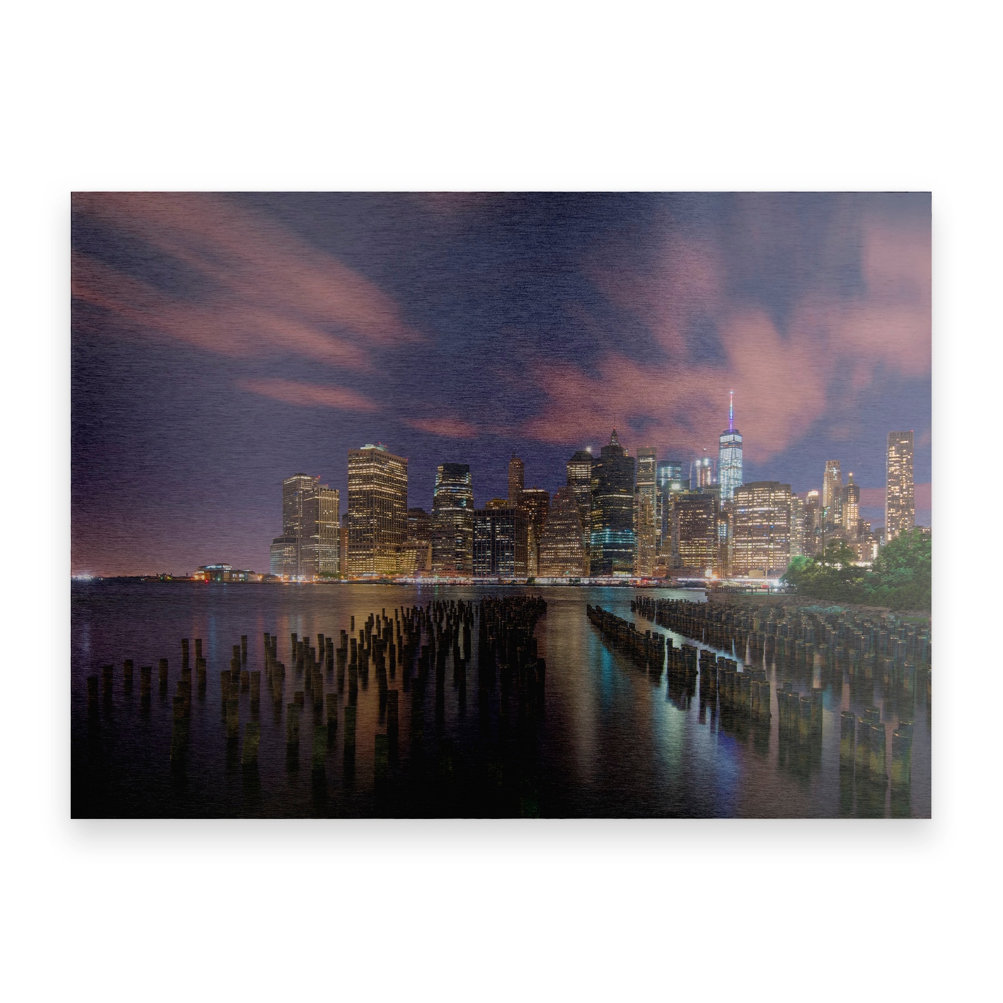 Austin 'New York City At Night' Floating Brushed Aluminum Art