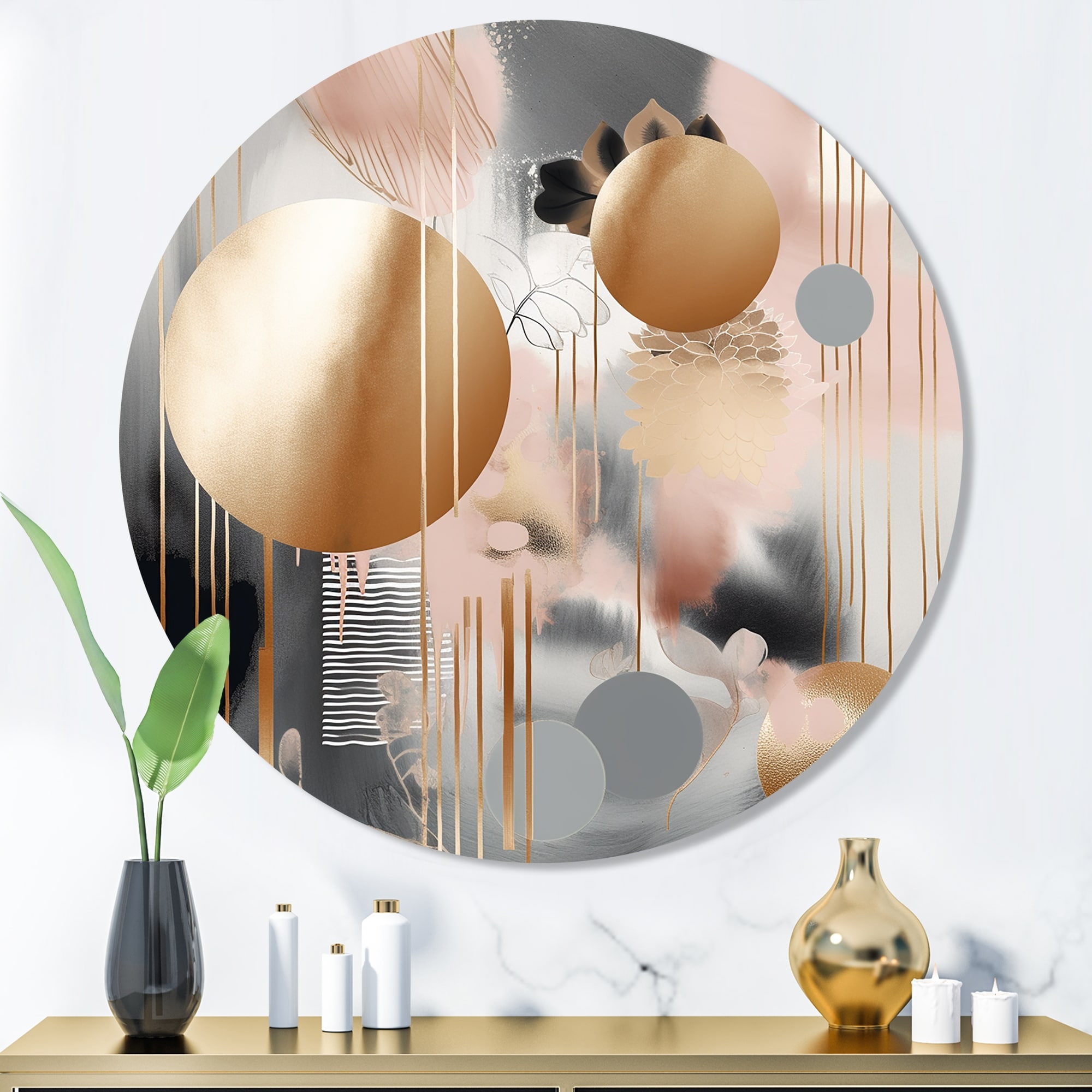 Designart "Soft Colors Shapes And Lines Marble II" Abstract Marble Metal Round Wall Art