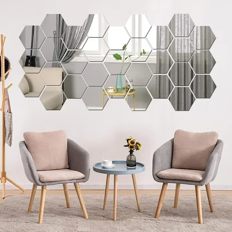 Hexagon Acrylic Mirror Wall Sticker, Removable DIY Bathroom Tiles, Gold Silver Mosaic Home Decor red 80x70x40mm